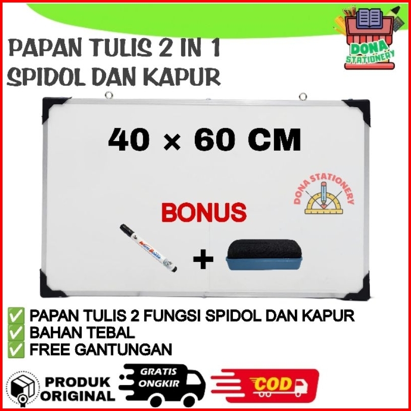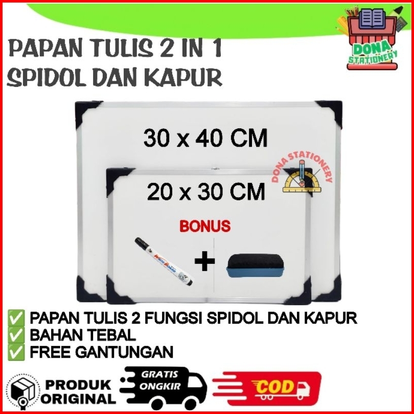 Papan Tulis Whiteboard 2 In 1 Spidol Dan Kapur Papan Tulis Anak 30 X 40 Papan Tulis 20 X 30