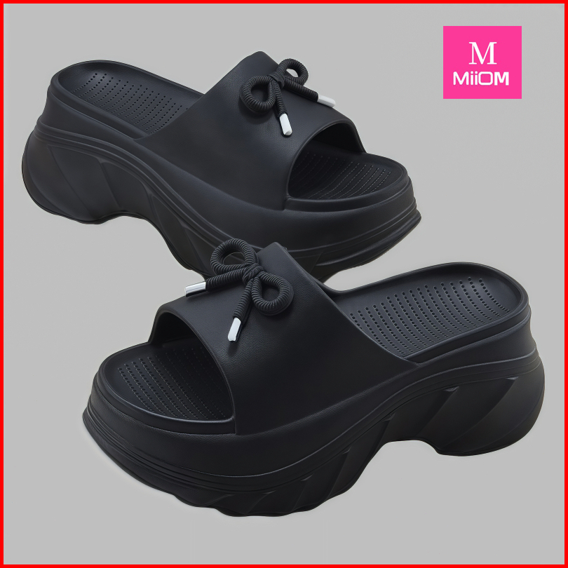 Miiom Sandal Tebal Eva Hak Tingginon-slip Wanita Sandal Luar Ruangan Hitam Tinggi 8cm