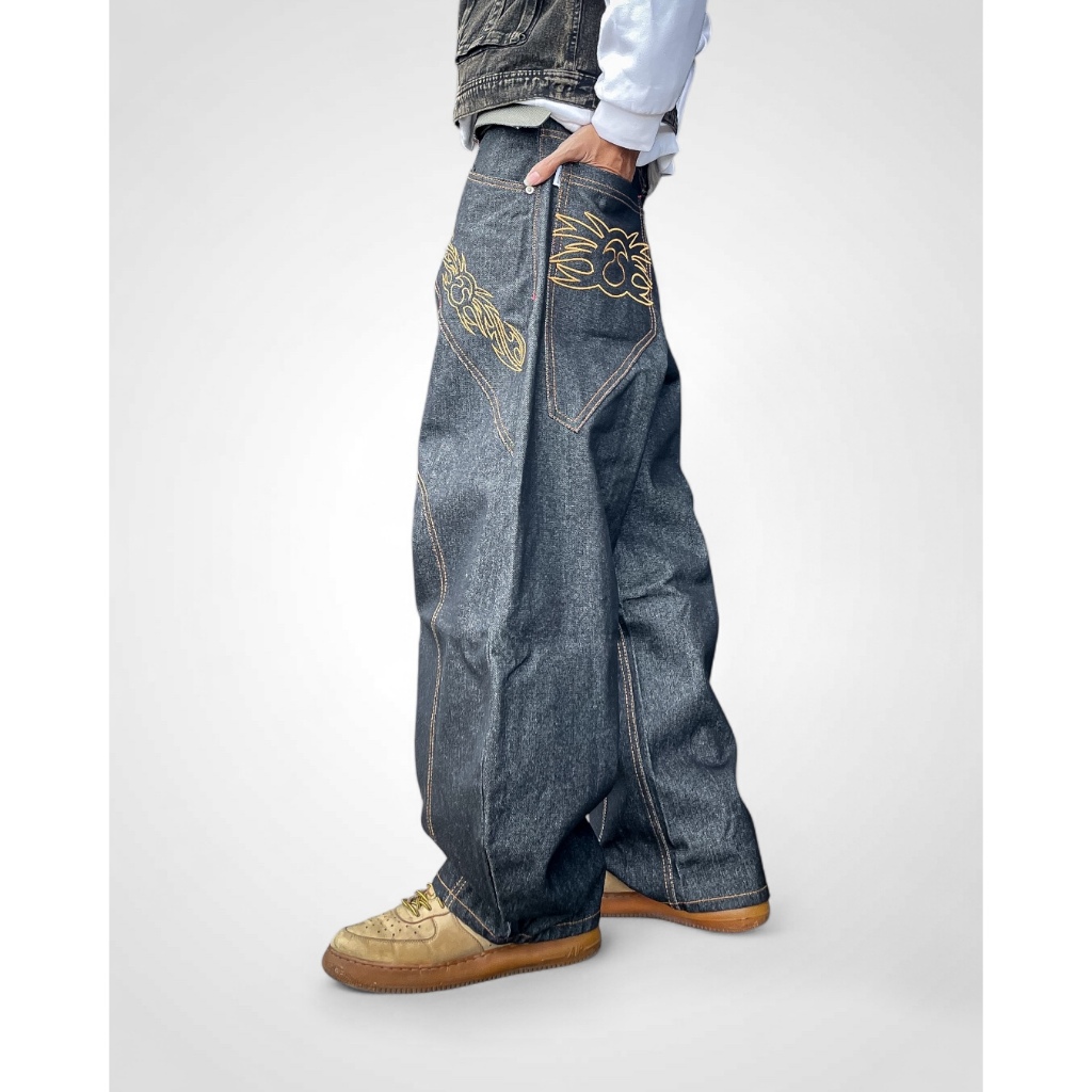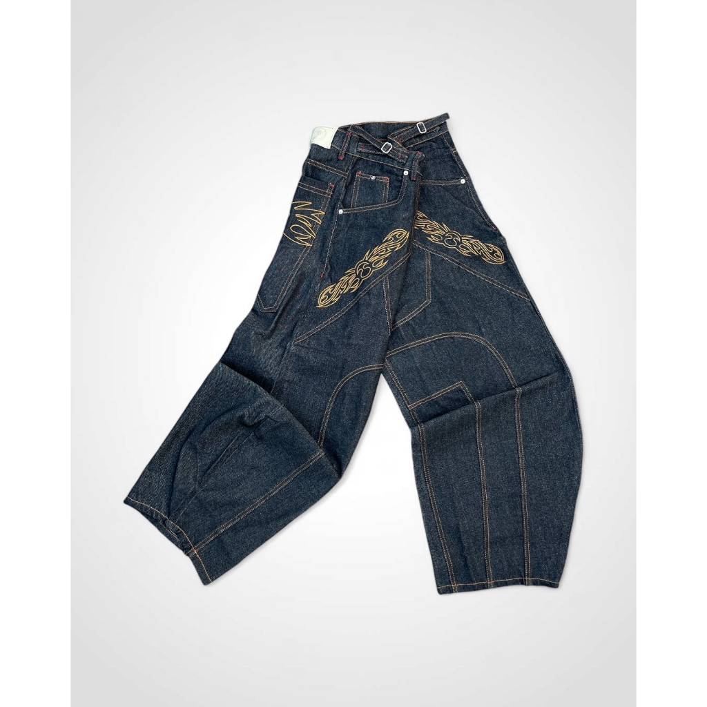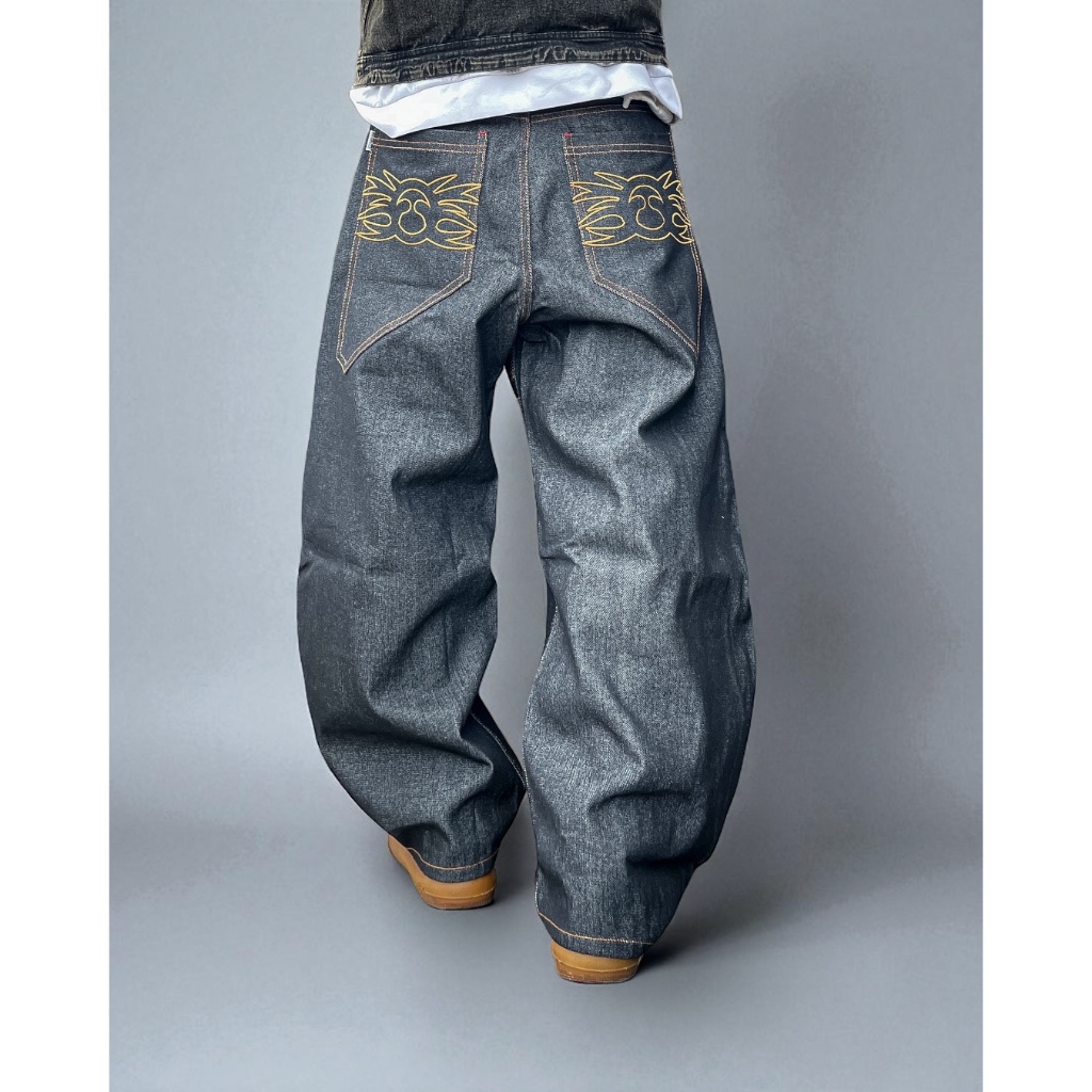 Bawwa Santai RAW DENIM BAHAN KAKU DAVY SERIES BLACK Celana Baggy BARREL CURVE Jeans Pecah Pola Celana Gombrang Celana ballon jeans Baggy pants