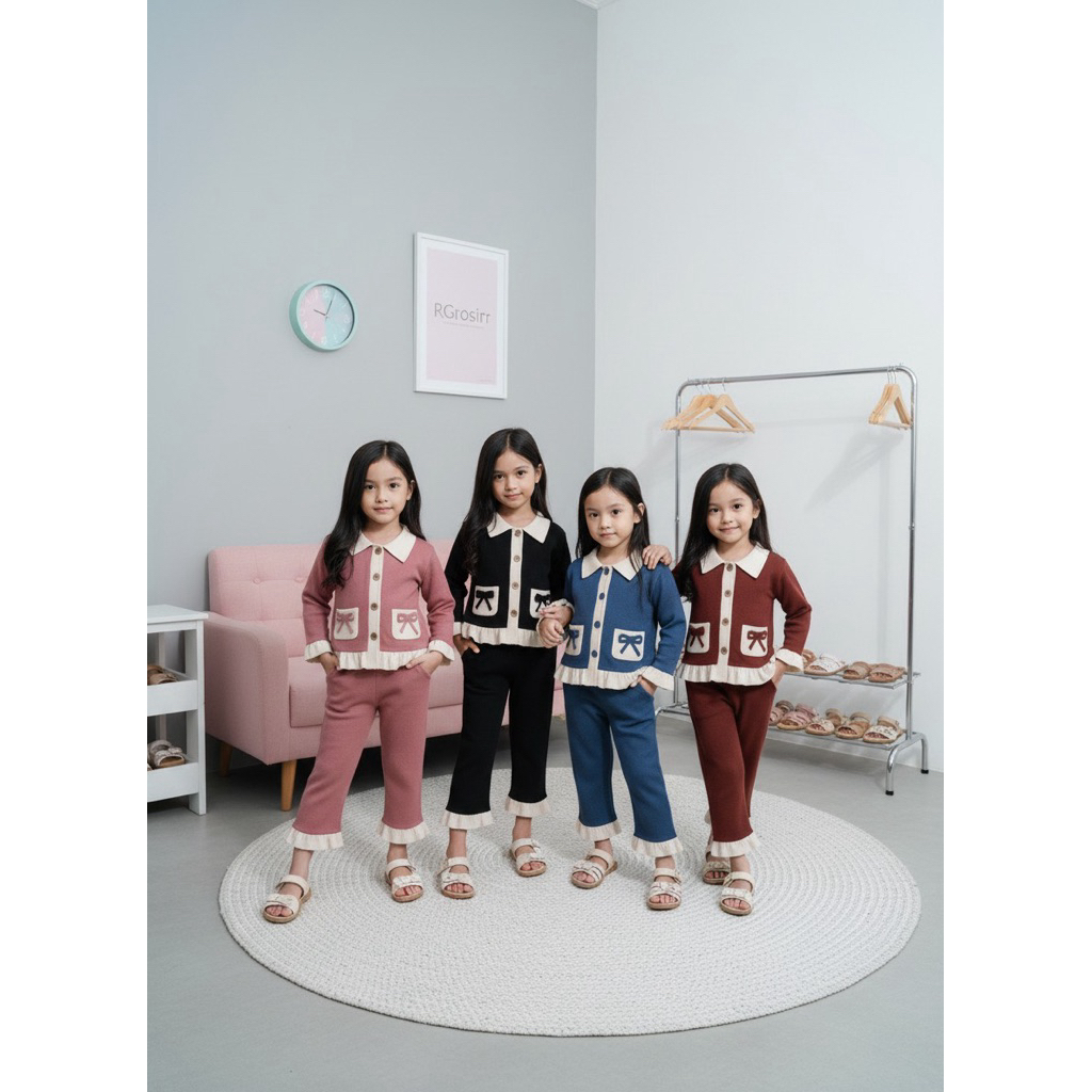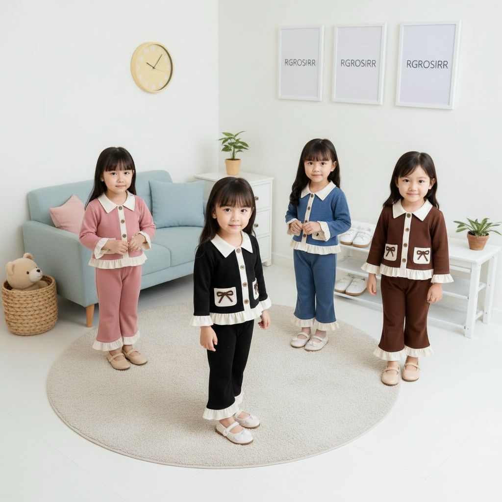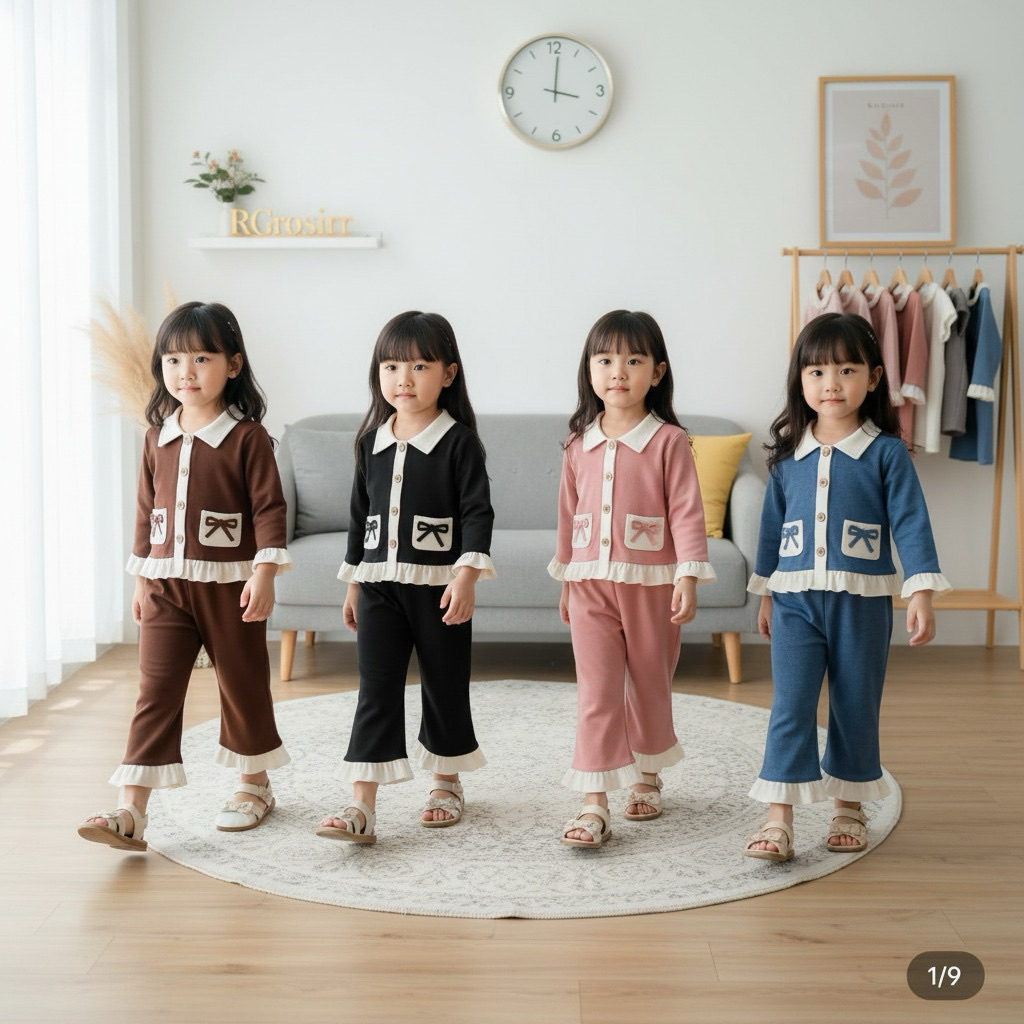 RGrosirr Baju Anak Perempuan Setelan Luna Korean Style Usia 1-5 Tahun Fashion Oneset Atasan Celana Panjang Model Cutbray Terbaru Gaya Korea Modern Cantik