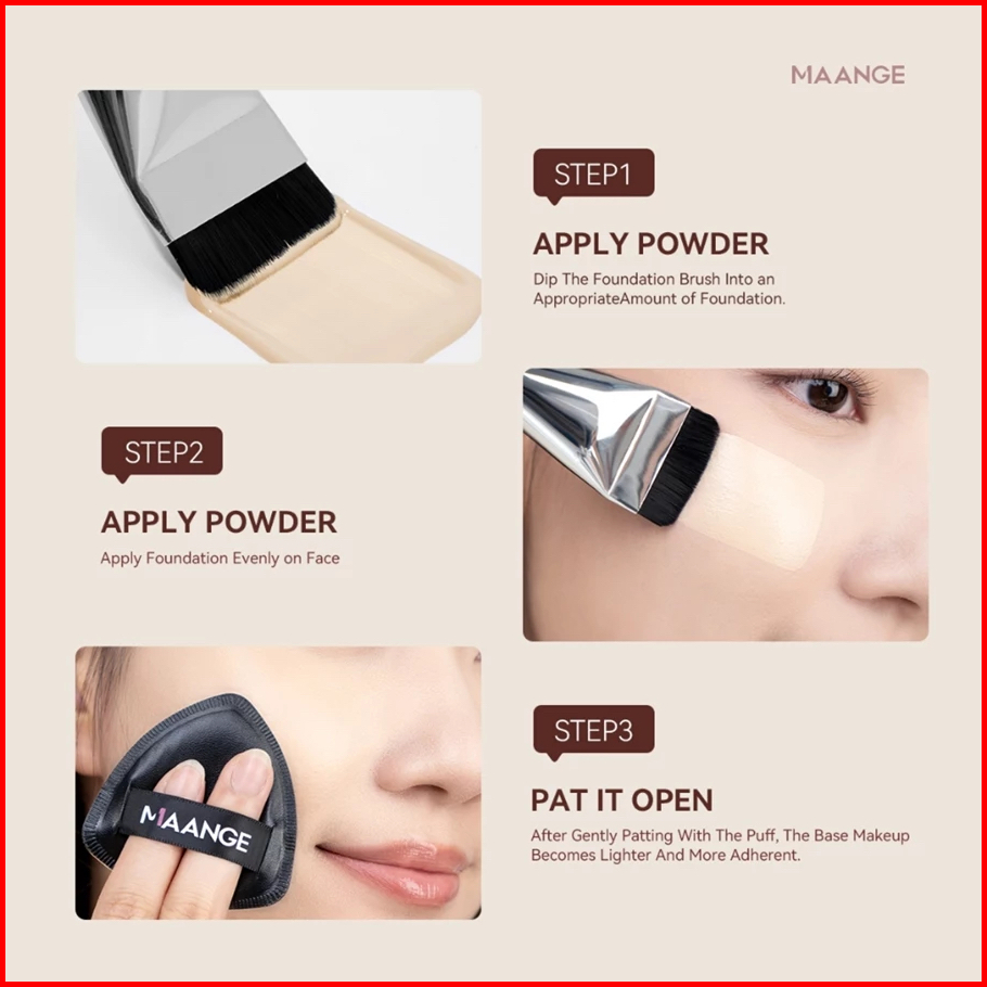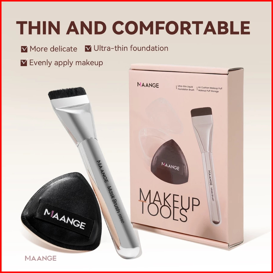 Yuki Manado Maange Set Kuas 3in1 Complexion Foundation Brush 2 Puff Lembut Serbaguna