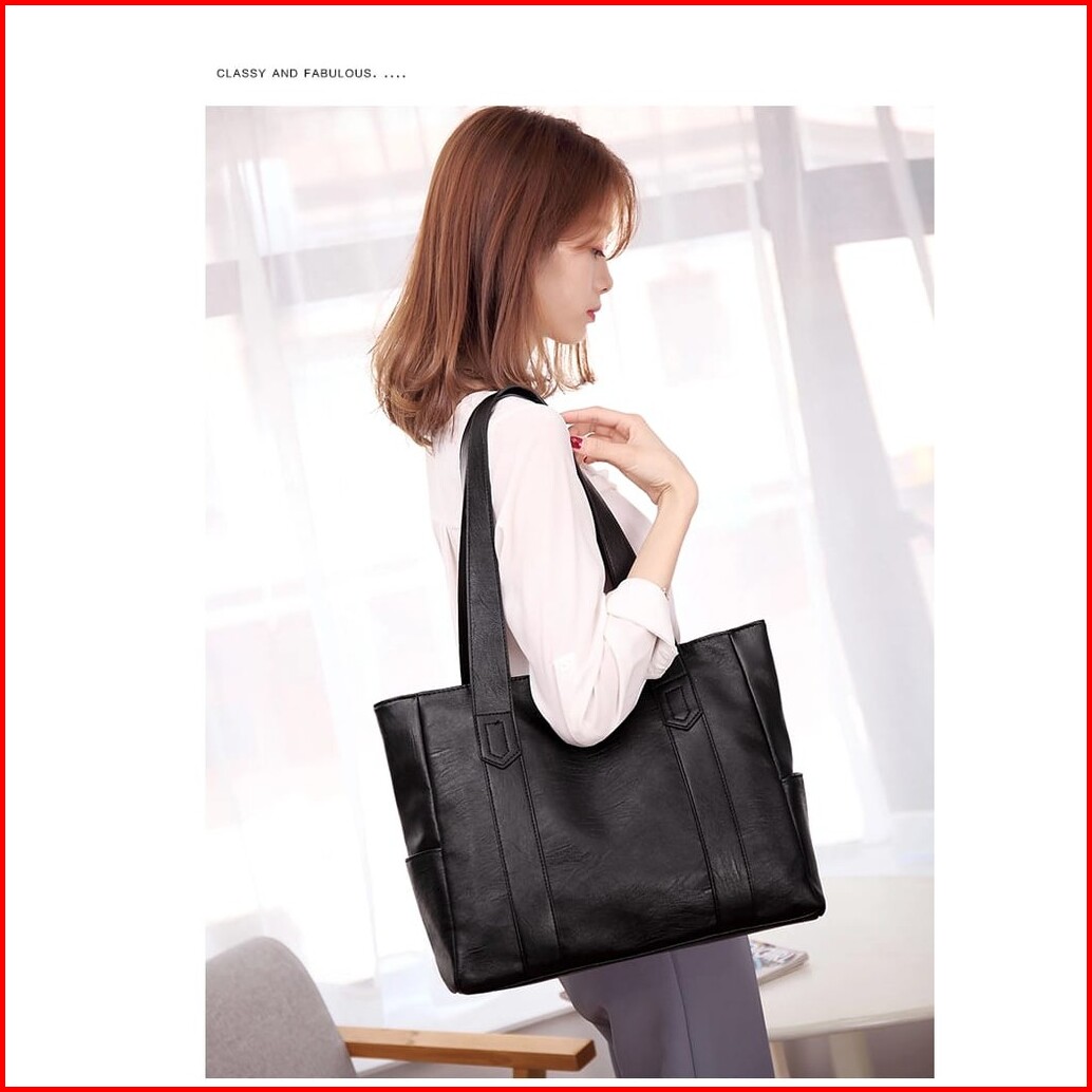 Rifich - Tote Bag Semi Kulit Premium Ada Resleting Tas Bahu Wanita Terbaru Kapasitas Besar Muat Banyak Tote Ibu Pengajia