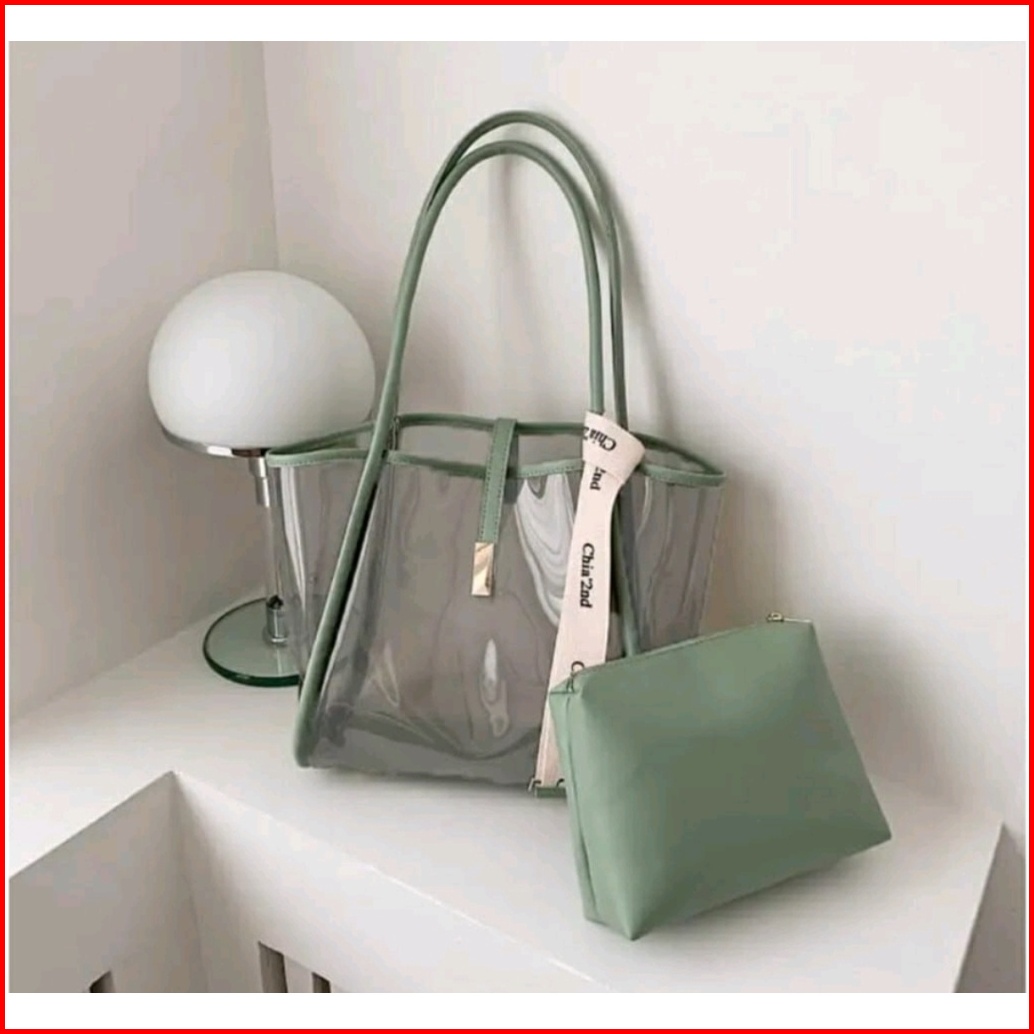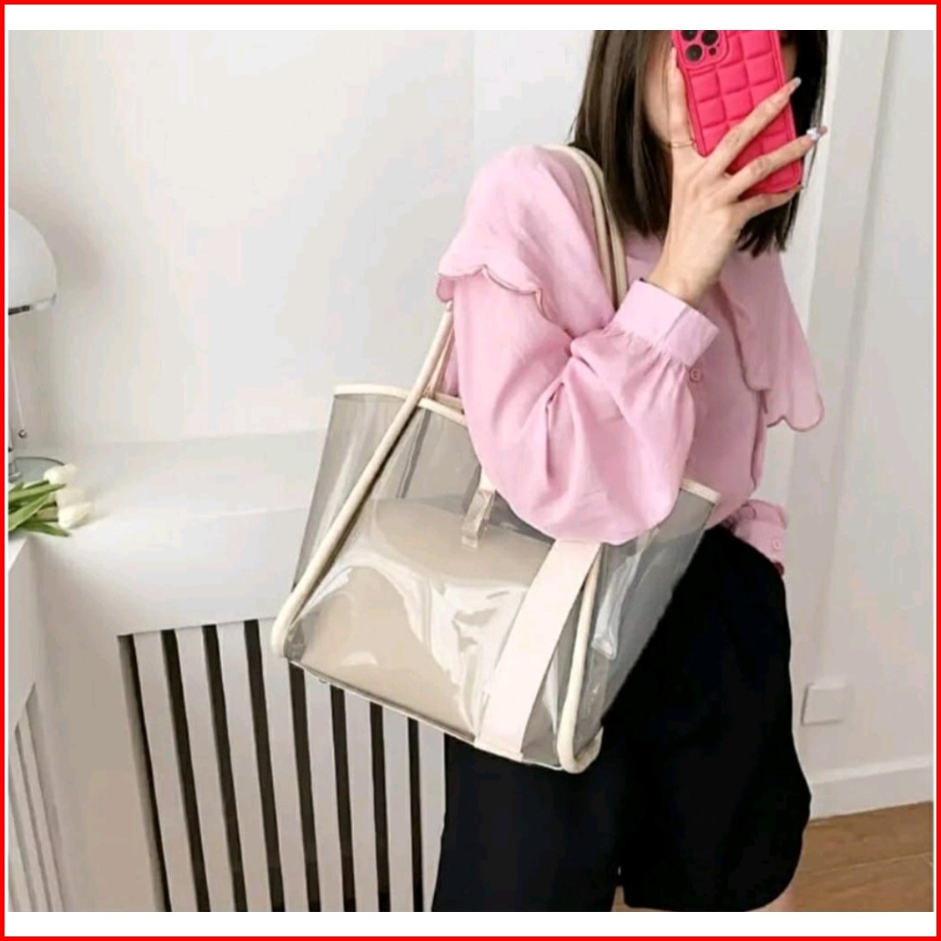 Totebag Wanita-tas Bahu Wanita Transfaran Mika Pvc- Shoulderbag Wanita-free Pouch Handbag-tas Kuliah