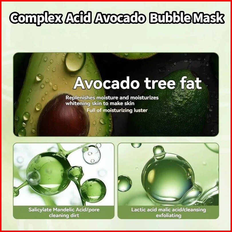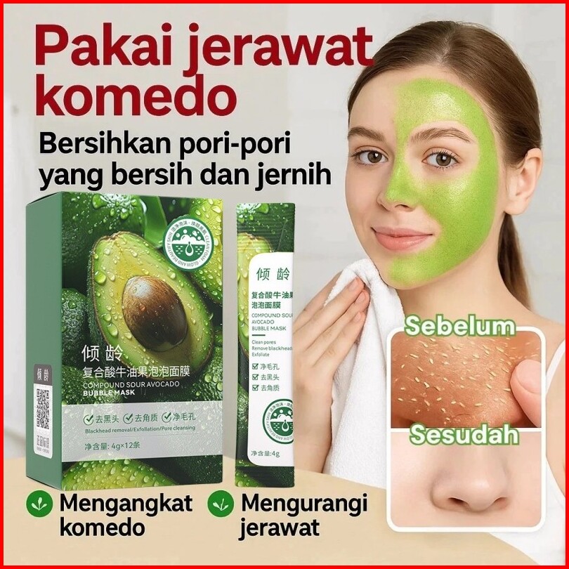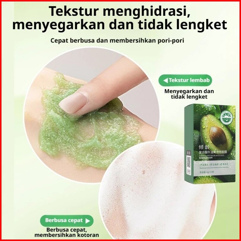 Avocado Bubble Mask 4g 12pcs Masker Gelembung Sleeping Mask Deep Cleansing Masker Gelembung Alpukat Untuk Pria Dan Wanit