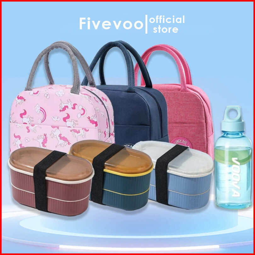 Fivevoo Kotak Makan Botol Set Lunch Box Set Kotak Bekal Makan Siang 1set Kotak Makan Botol