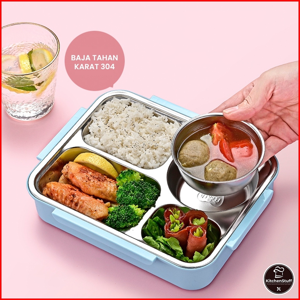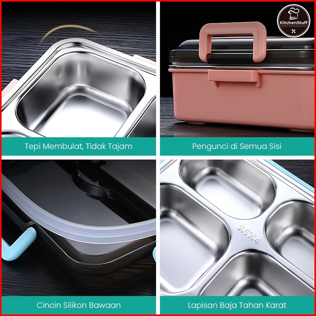 Lunch Box Premium 1000ml Sus 304 Food Grade - Anti Tumpah - Free Sendok Sumpit Kitchen Stuff