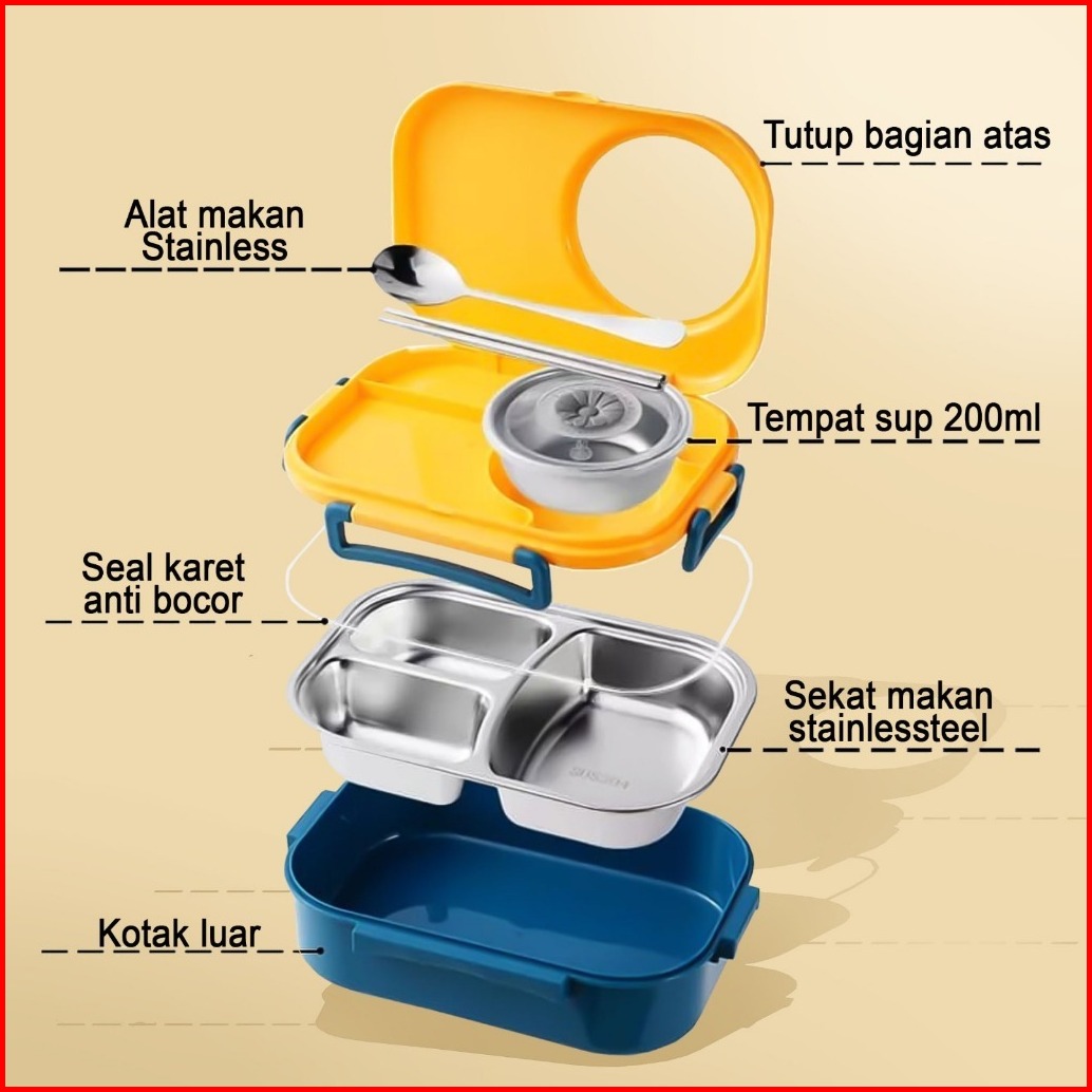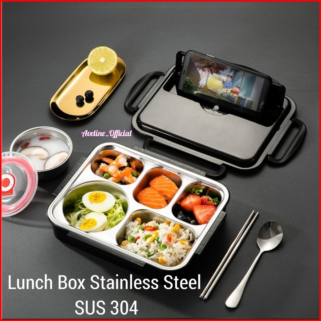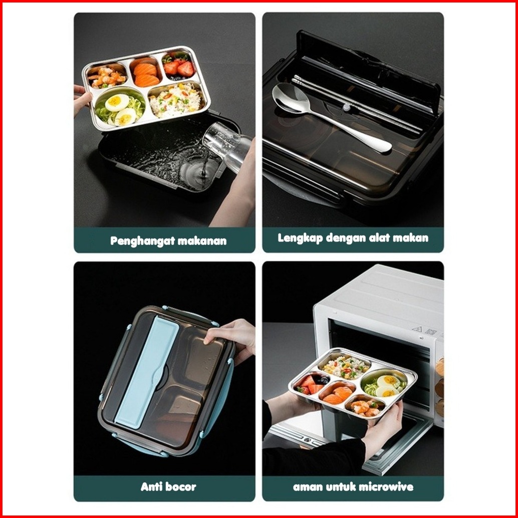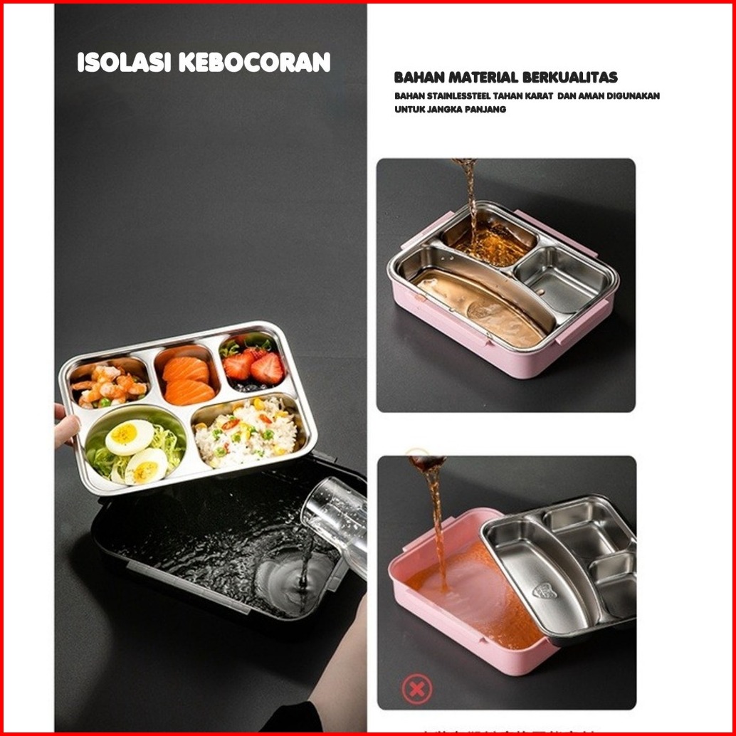 Ideame Lunch Box Kotak Makan 3 Sekat 4 Sekat 5 Sekat Sus 304 Stainless Steel Tempat Bekal Stainless Tahan Panas Dan Anti
