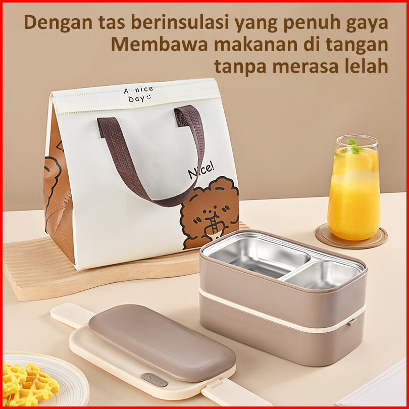 Kotak Bento Stainless Portabel Tahan Bocor - Lunch Box Makan Siang Microwa Kotak Bento Anti Bocor