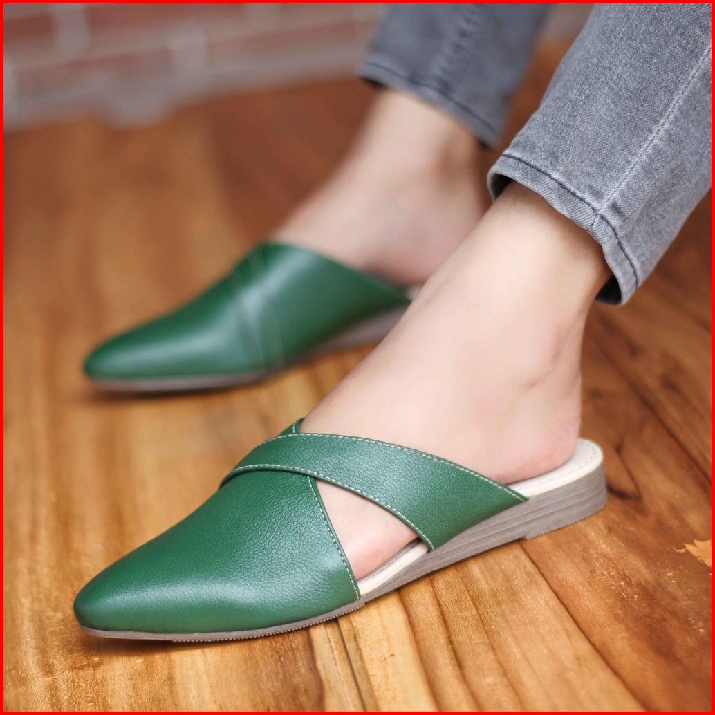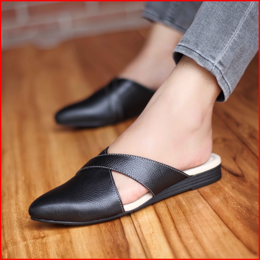Grandable - Isabel Sepatu Sandal Slop Flat Bustong Wanita Kulit Asli Tutong Cewek Kekinian Terlaris