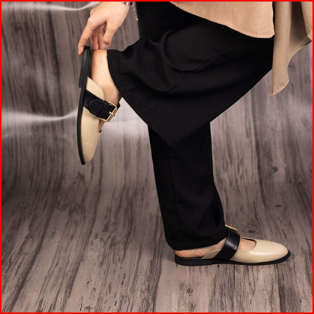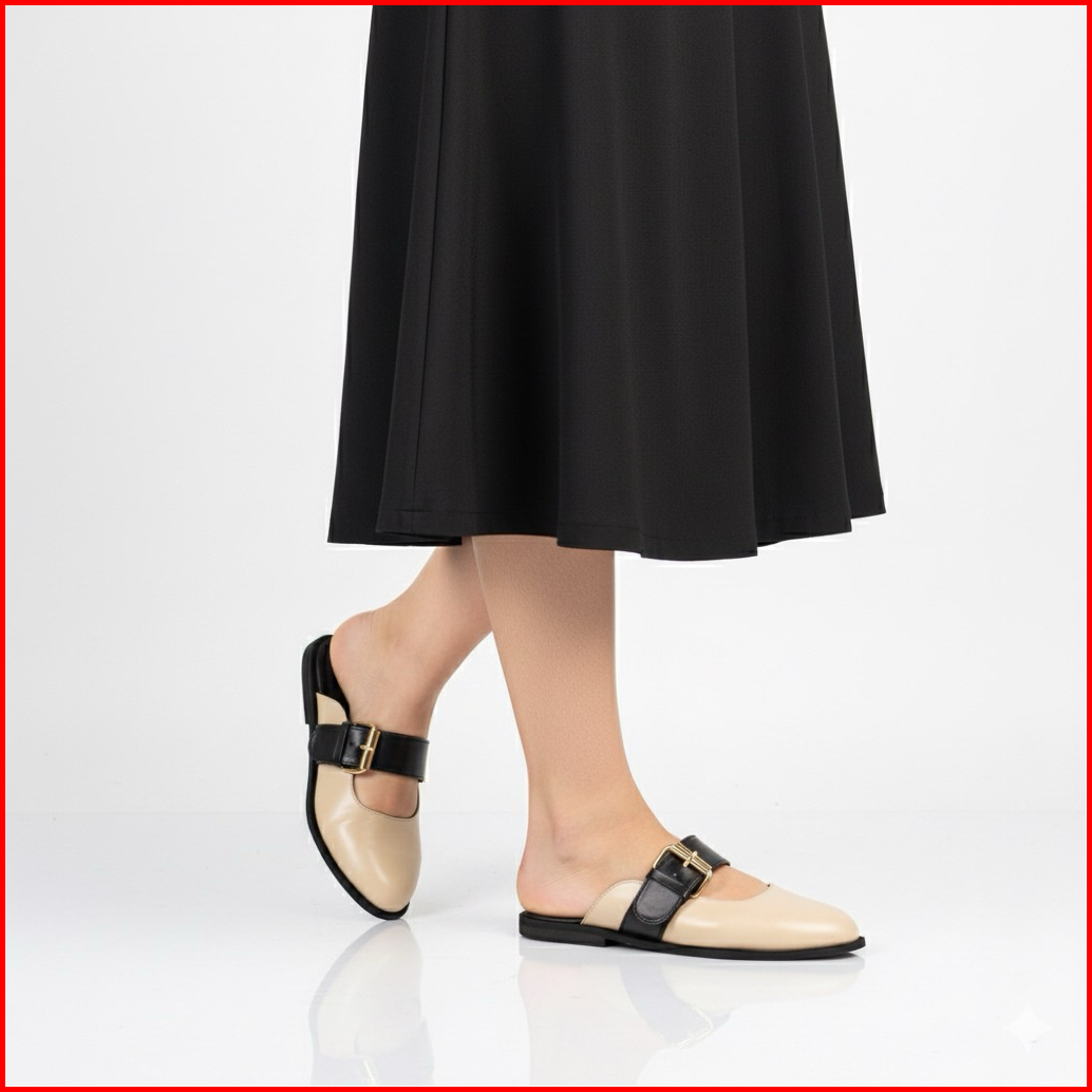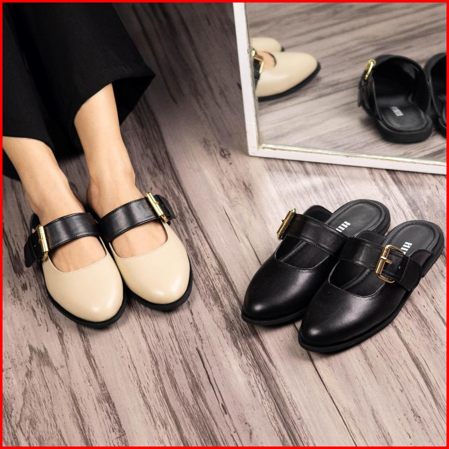 Sepatu Sandal Mules Flatshoes Wanita Heels Hak 2 Cm Vienna Cream Hiryn
