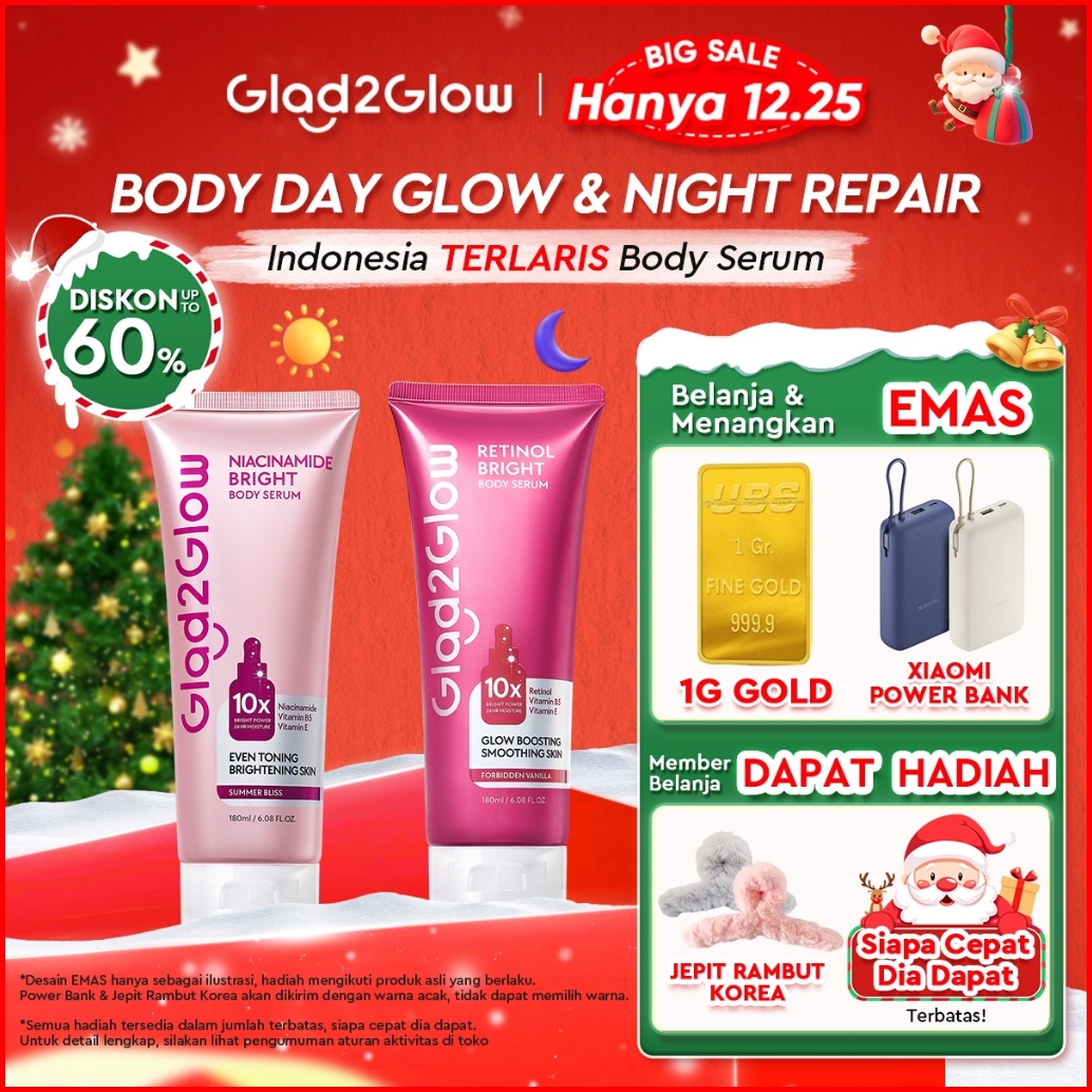 New Launch Glad2glow Retinol Niacinamide Bright Body Serum Body Lotion 10x Cerah Absorb Whiten Tone Up All Day Bright Gl