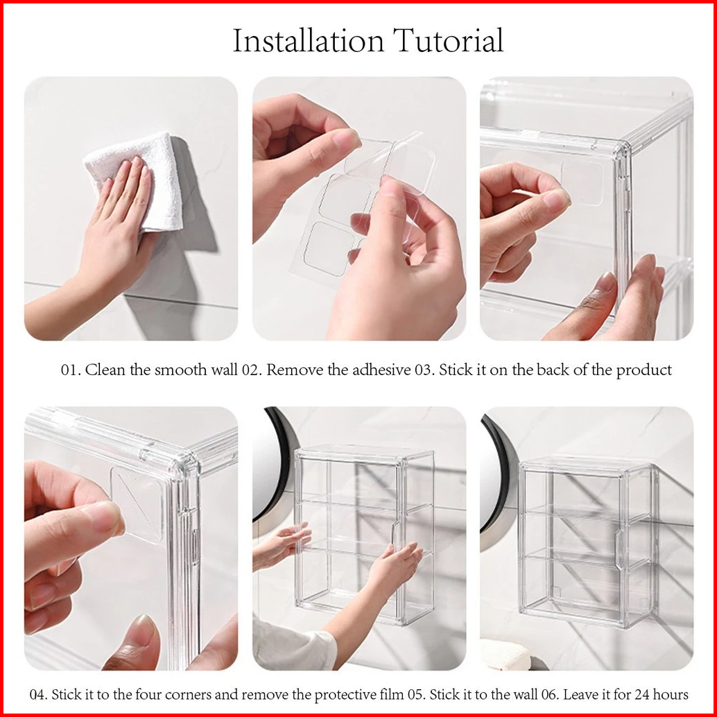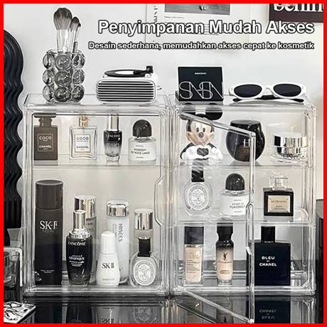 Kotak Penyimpanan Kosmetik Desktop Transparan Anti Debu Produk Perawatan Kulit Rak Partisi Berkapasitas Besar Kotak Peny