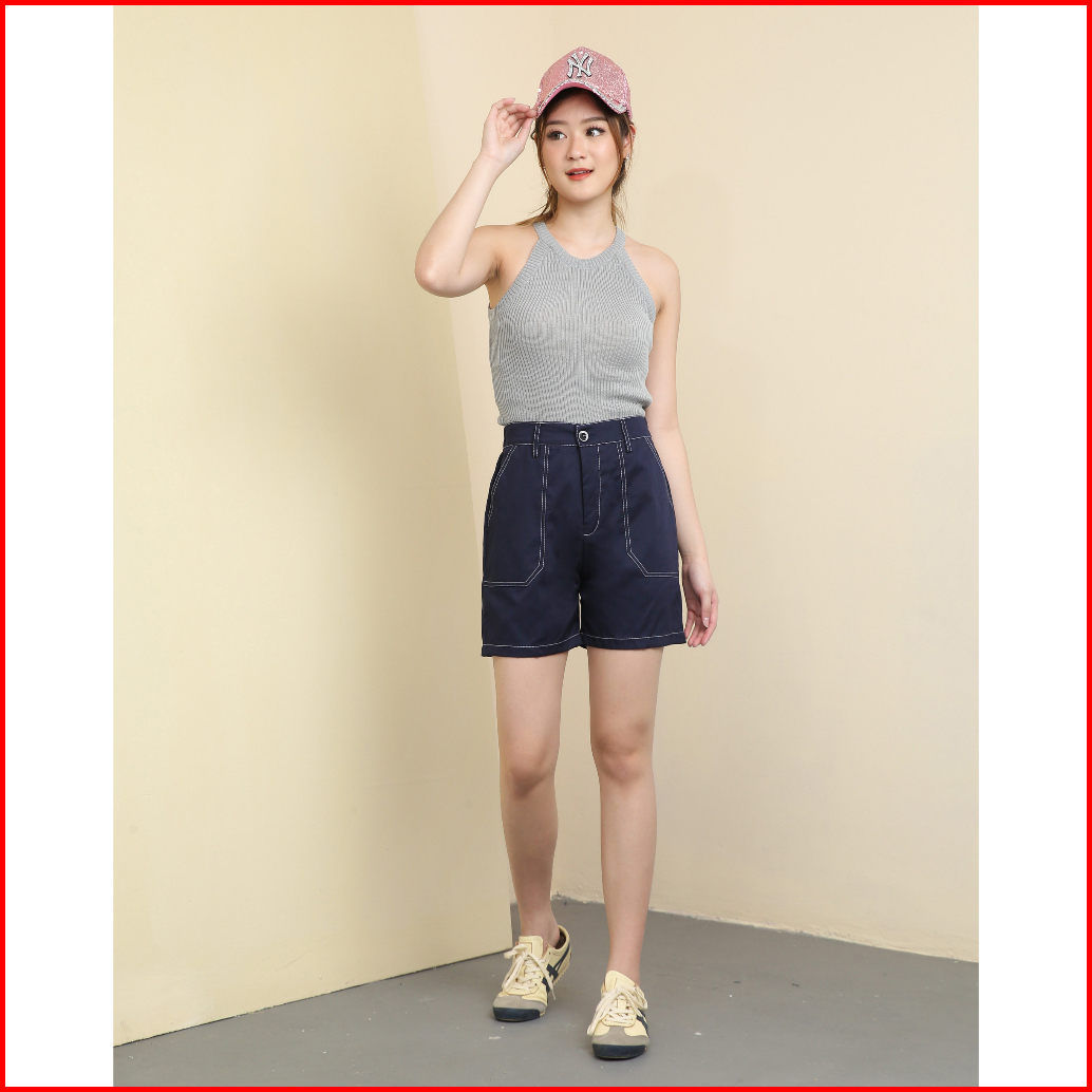Celana Pendek Highwaist Wanita Hotpants Hw Bahan Katun List Putih Rakina