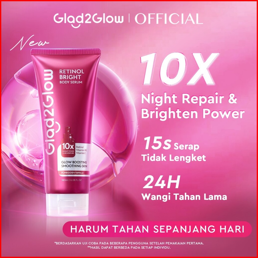 New Launch Glad2glow Niacinamide Retionl Bright Body Serum 10x Cerah Absorb Whitening Tone Up Body Lotion Parfum Tahan L
