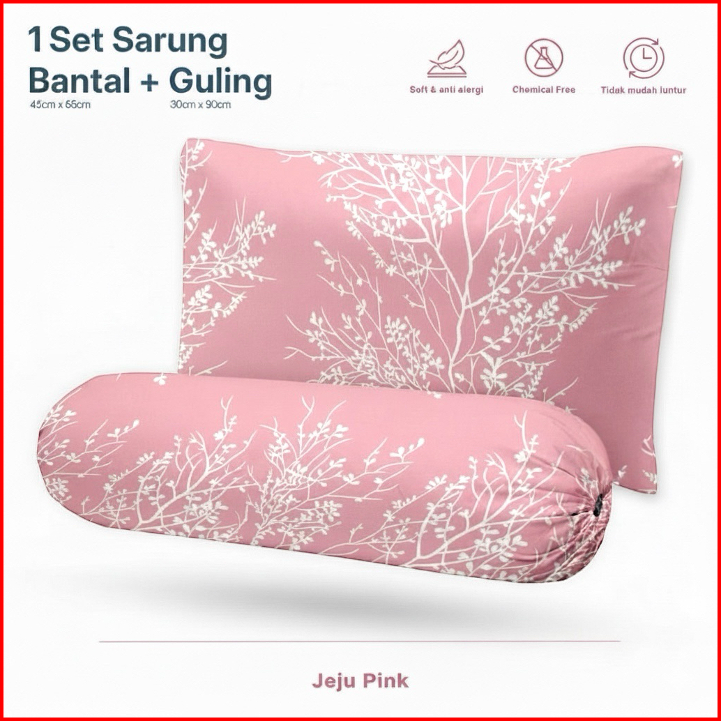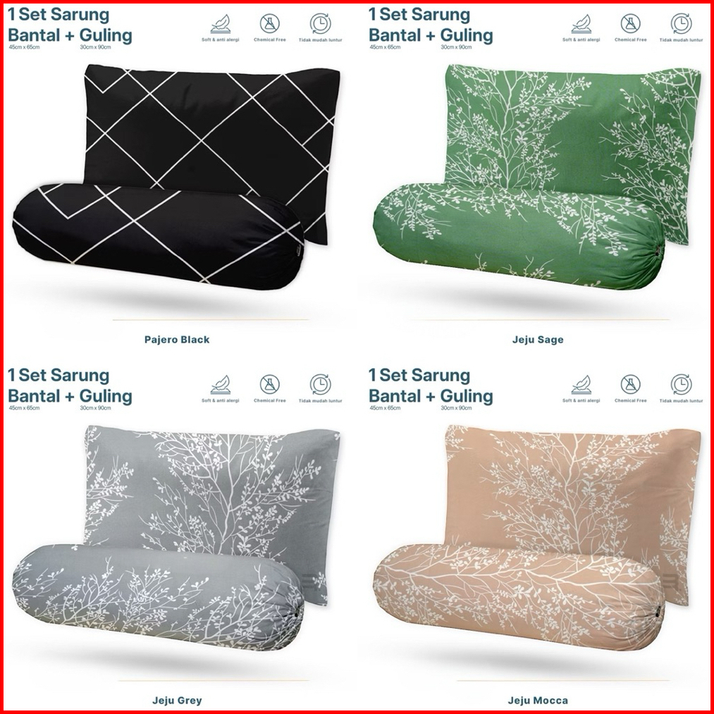 Paket Sarung Bantal Guling Motif Jeju Memory Bahan Katun
