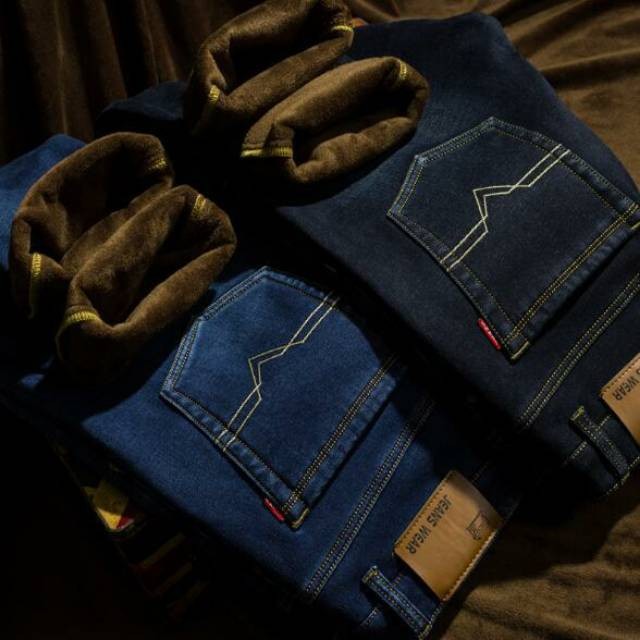 Celana Musim Dingin Pria Celana Jeans Musim Dingin Pria Celana Thermal Celana Winter
