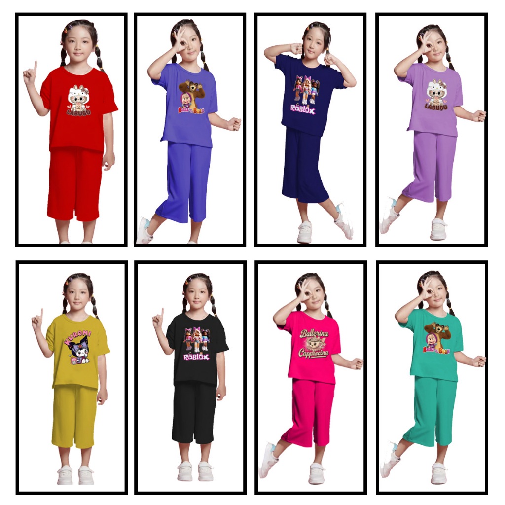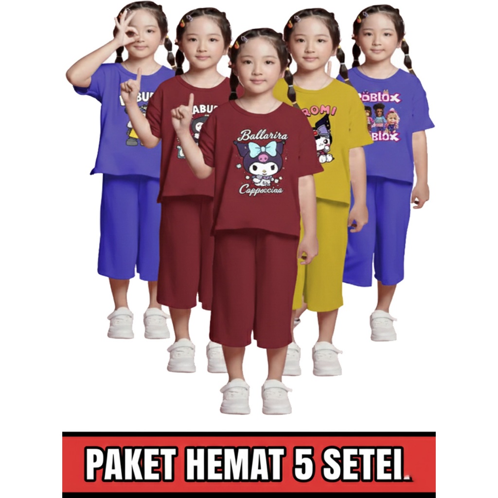 5 PCS Setelan Baju Pendek Anak Wanita Usia 3-12 Tahun Paket Grosir Hemat