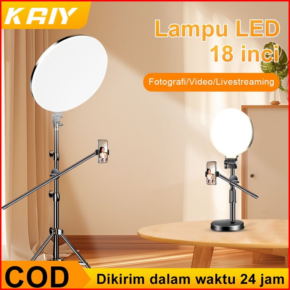 Kaiy Lampu Led 18 Inci Overhead Phone Stand Hp Lighting Panel Kontent Streaming Langsung Photo Vlog