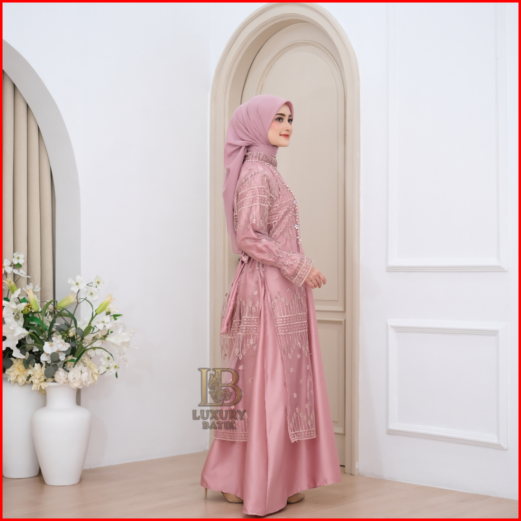 Dress Anisa Luxury Set Gamis Inner Outer Baju Lebaran 2026 Gaun Elegan Payet Mutiara Bahan Cavali Premium Tile Sapto