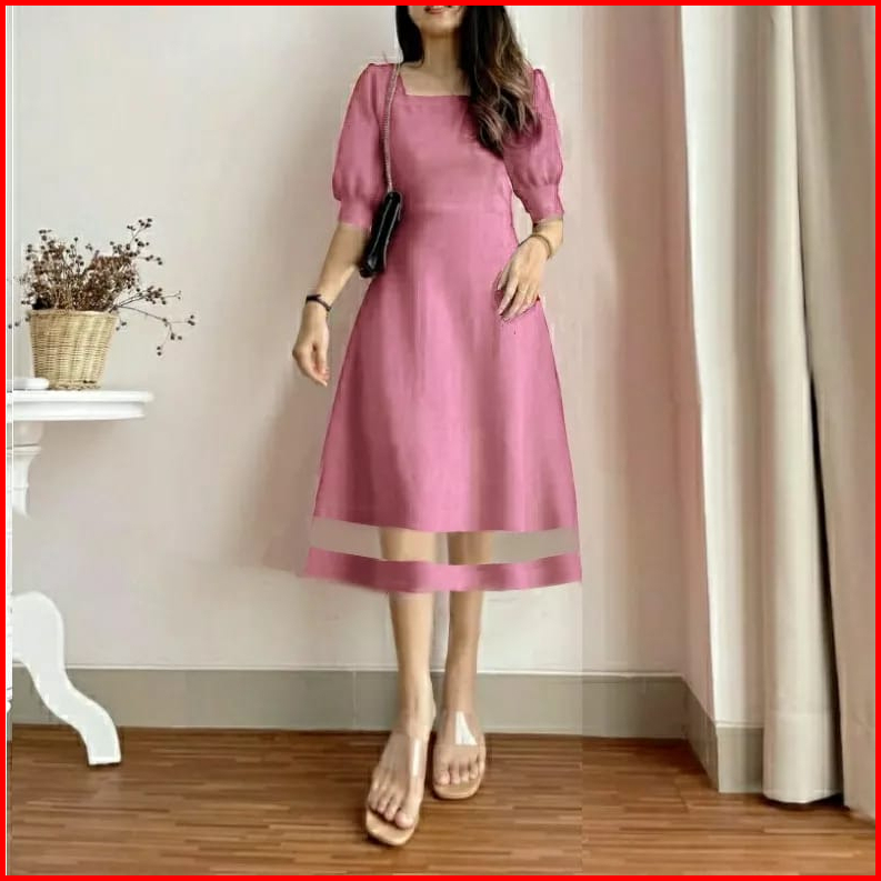 Terlaris Dres Alika Kombinasi Tile Scuba Dress Kekinian Dress Kantor Dress Cantik Size S.m.l.xl Acara Casual Formal Nata