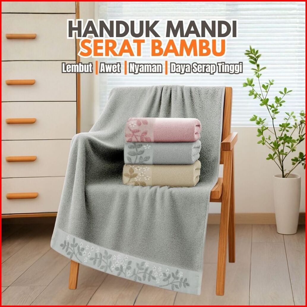 Handuk Mandi Dewasa Katun Serat Bamboo 70x140cm Motif Bordir Bunga Premium Tebal Lembut Towel Hotel Cantik Menyerap Air
