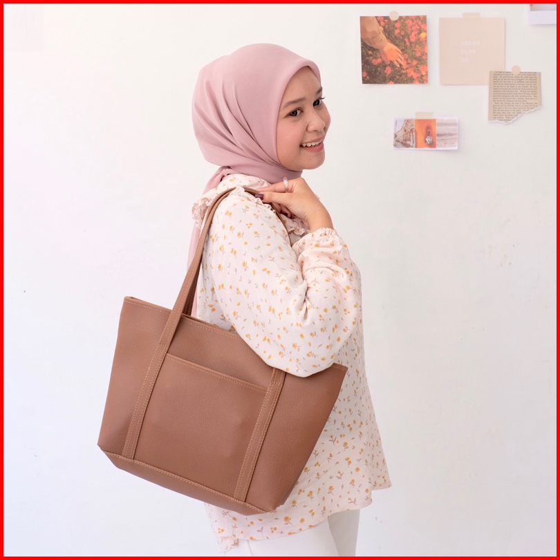 Totebag Shopper Verina Pocket Depan Ukuran 25x38cm
