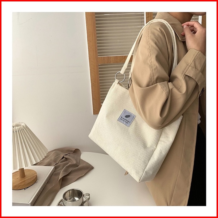 Tas Jinjing Tote Bag Tali Ring Corduroy Korean I Totebag I Tas Kerja Tas Kuliah