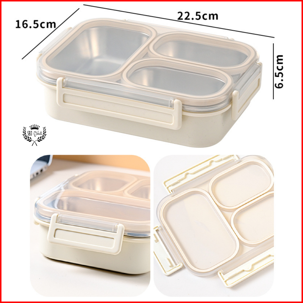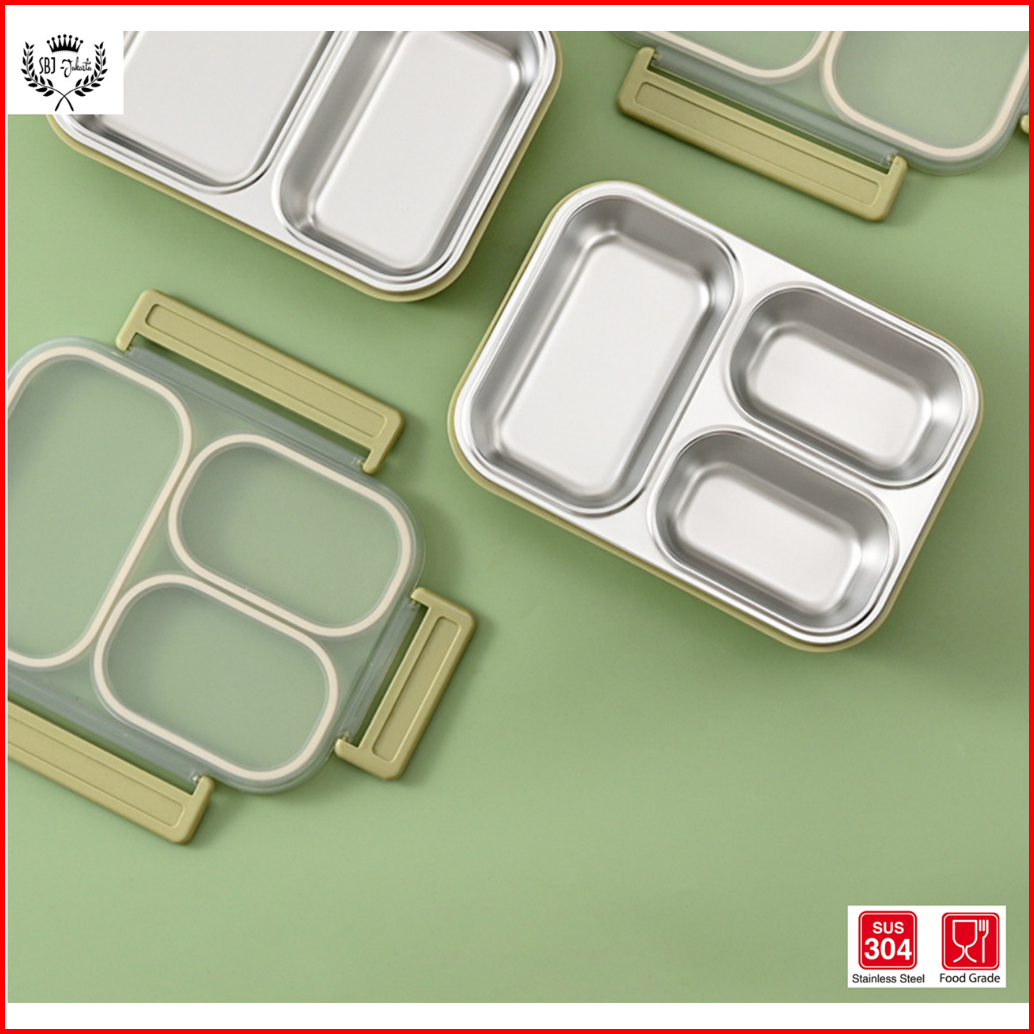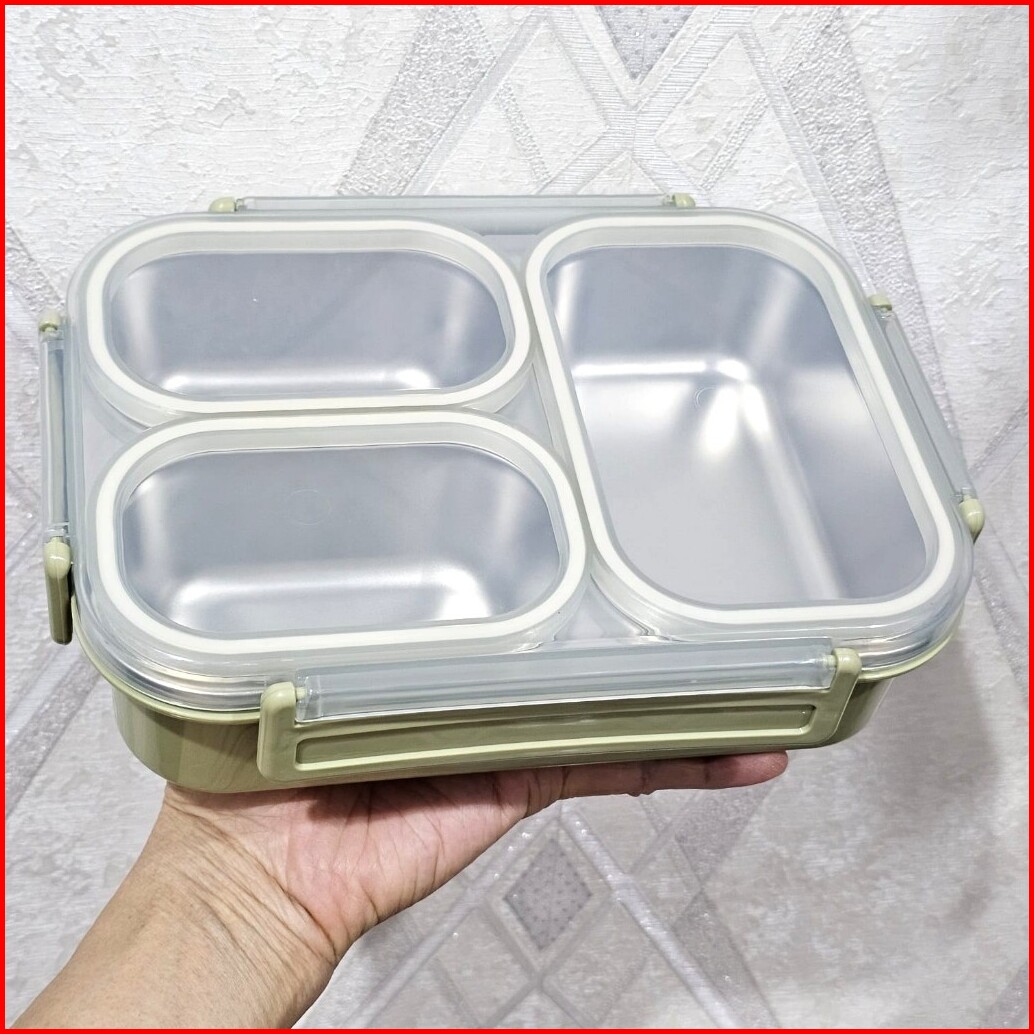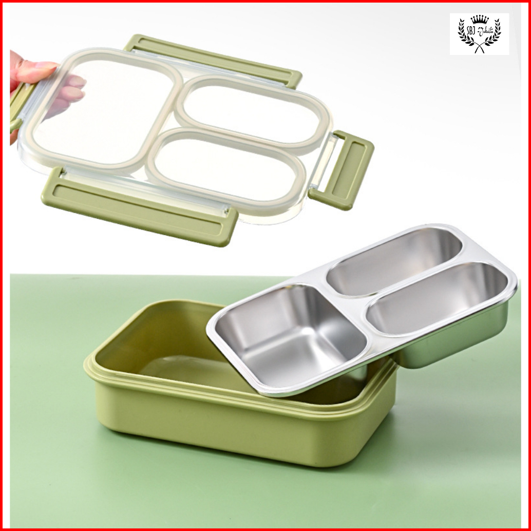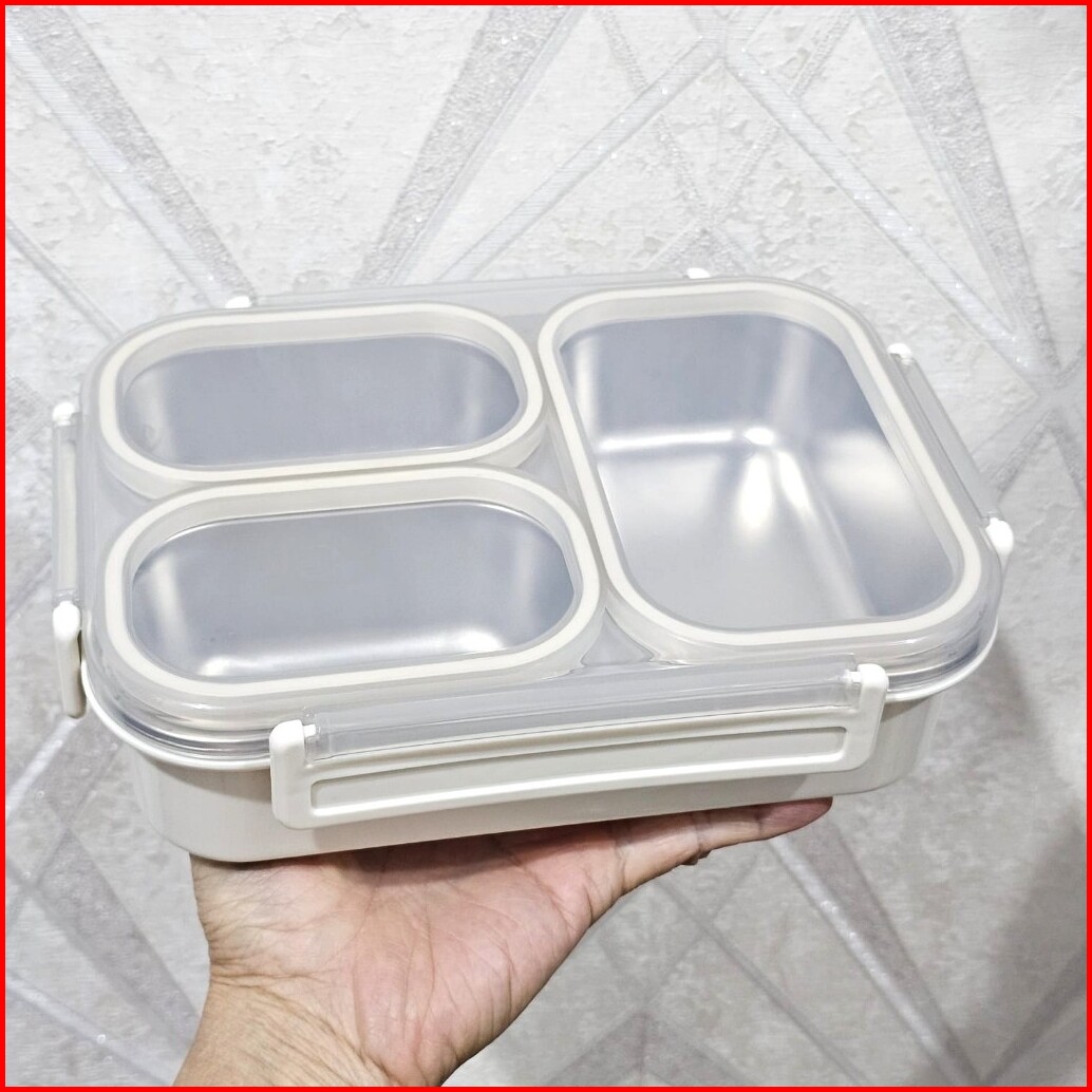 Kotak Makan Maxhome Grid 3 Sekat Seal Karet Anti Campur Lunch Box 304 Stainless Steel 1000ml