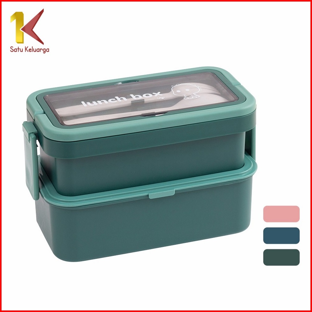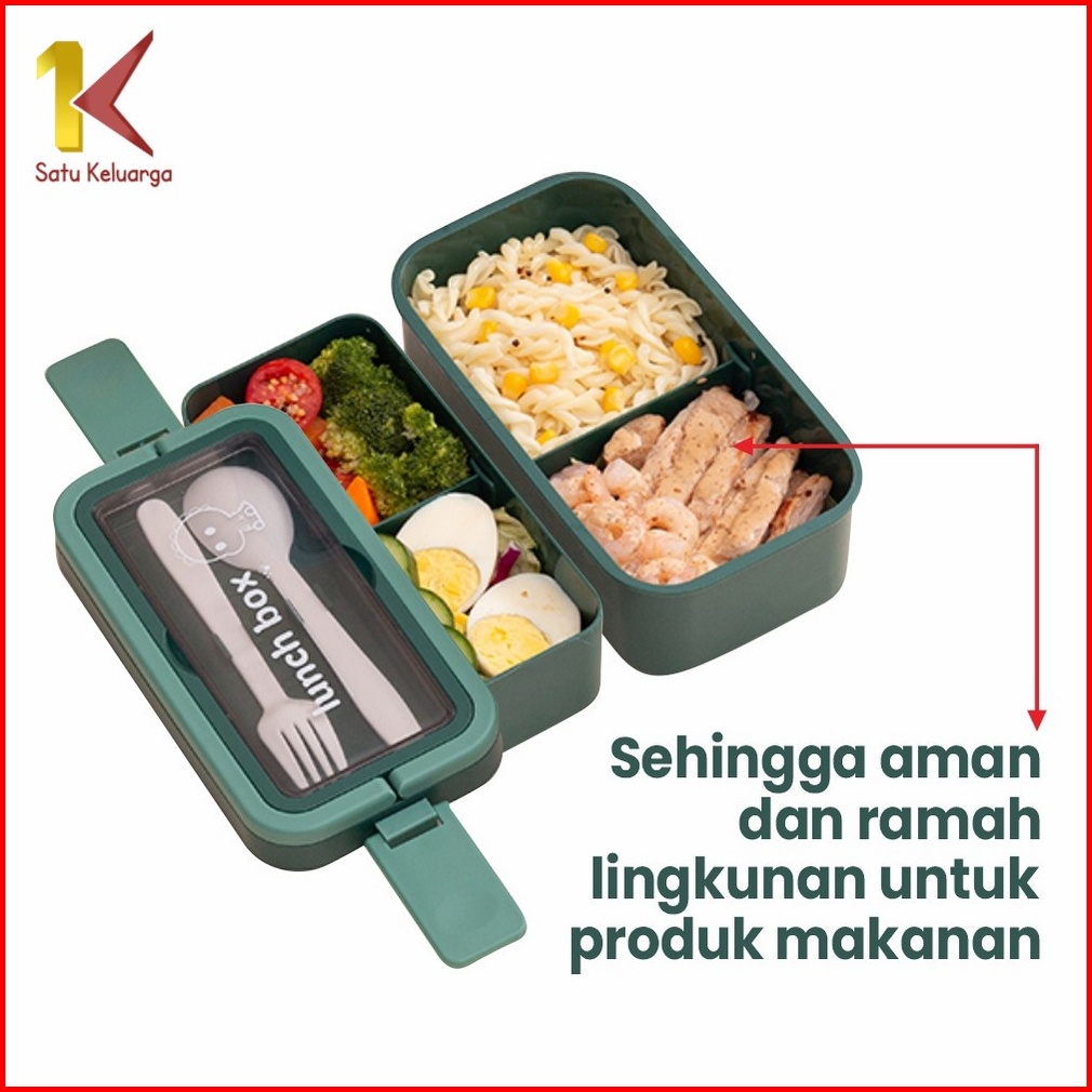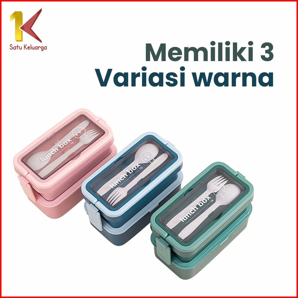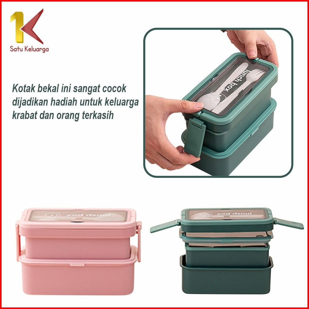 Satu Keluarga Kotak Tempat Makan Lunchbox Bekal 2 Susun Free Sendok Garpu C740 Bento Makan Siang Anak Anti Tumpah Rantan