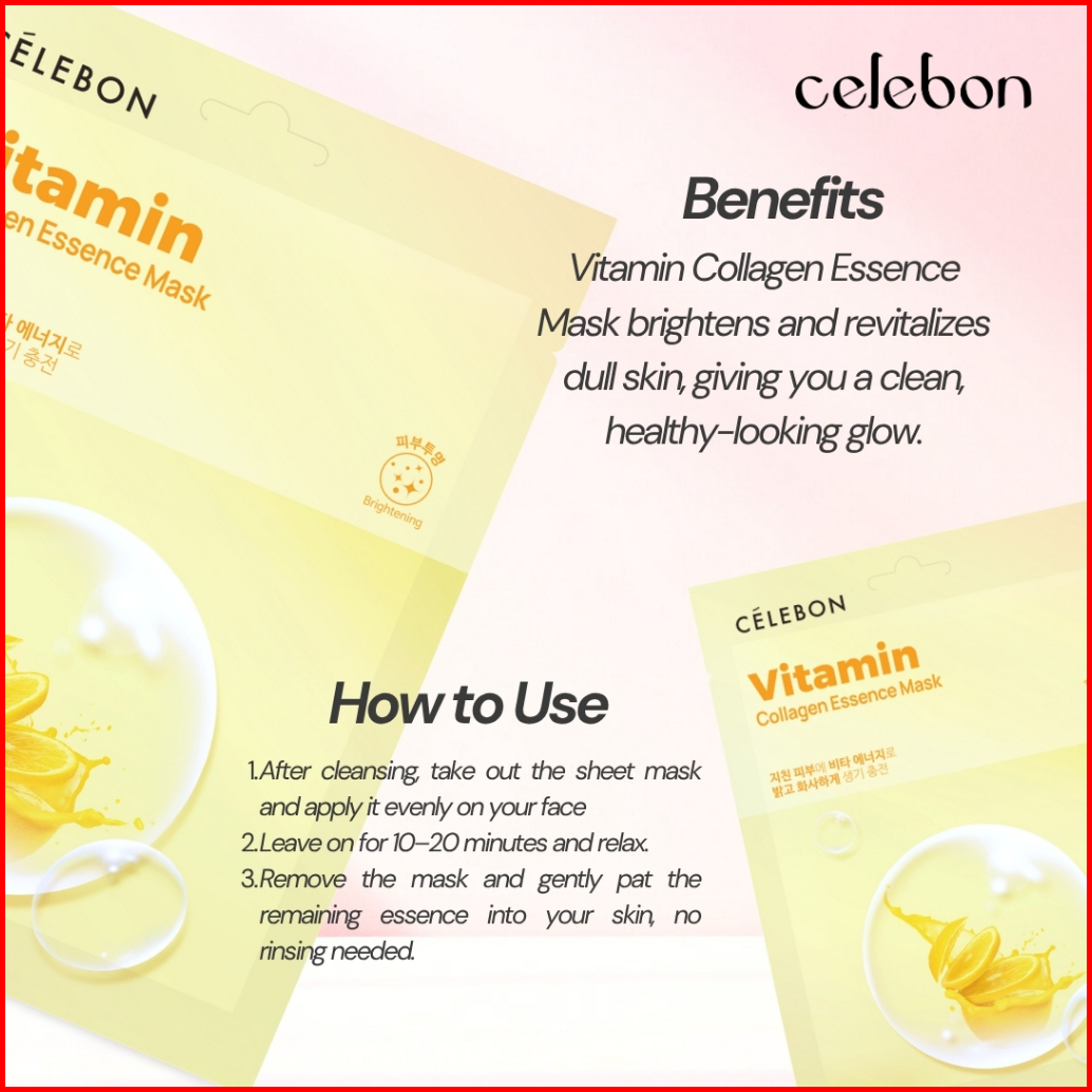 Celebon - 5pcs Bundle Vitamin Collagen Essence Mask Masker Wajah Alami Mencerahkan