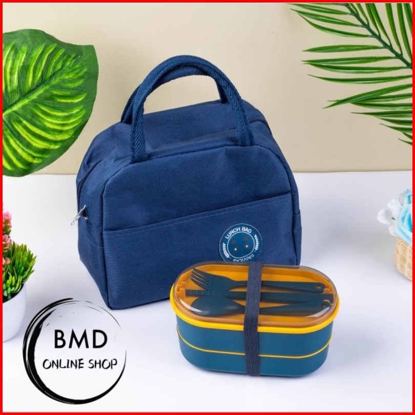 Set Kotak Makan 2in1 Lunch Box Tingkat Tas Thermal Lunch Bag Kotak Makan Tas Bekal