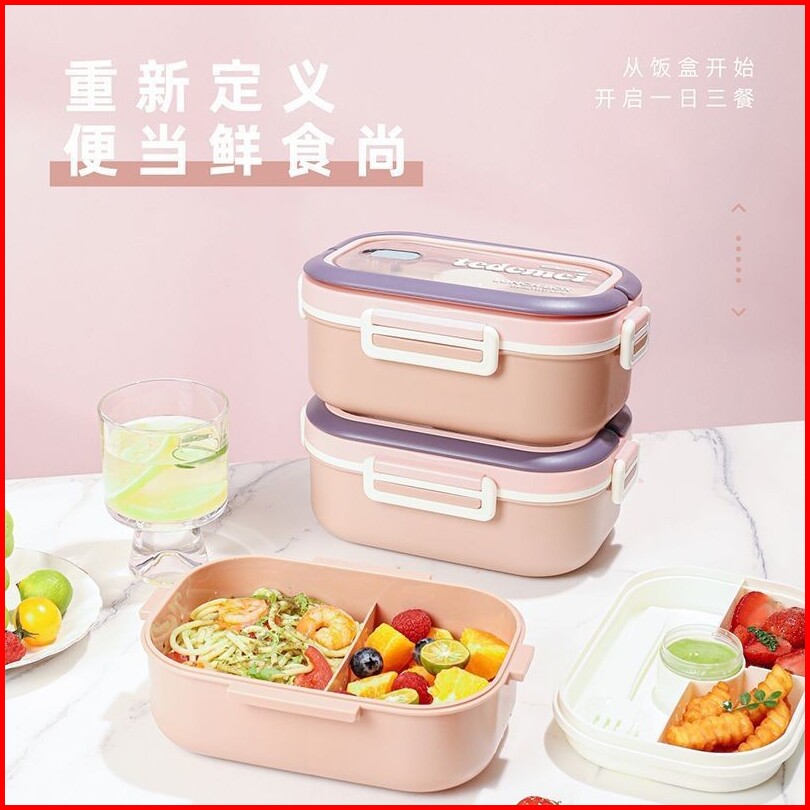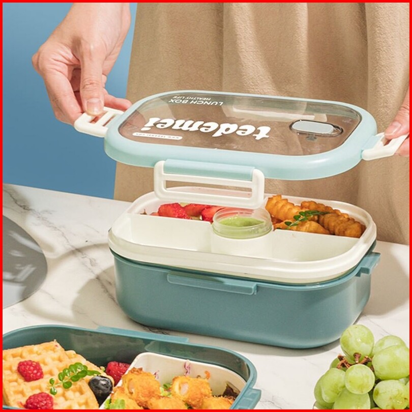 Kotak Makan Lunch Box Anti Tumpah 2 Layer 1100ml 500ml 6783 Bpa Free