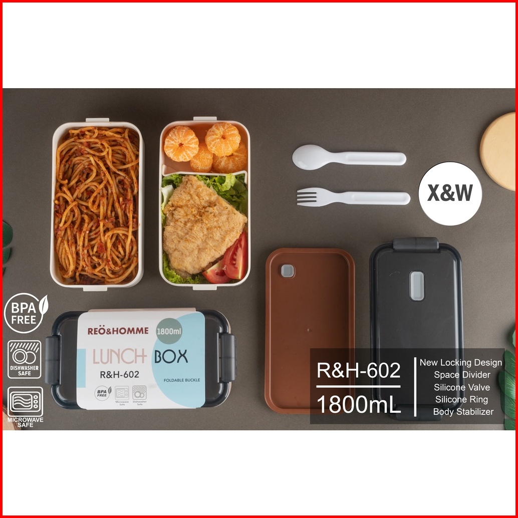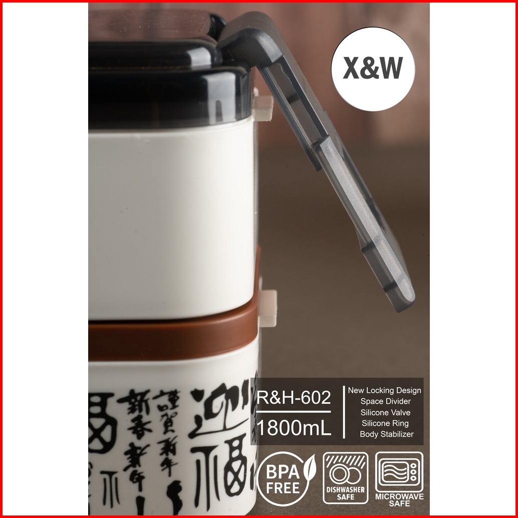 X W Kotak Makan Rh-602 Lunchbox 2 Layer Motif Printing Motif Japanese 1800ml Leakproof Bpa Free