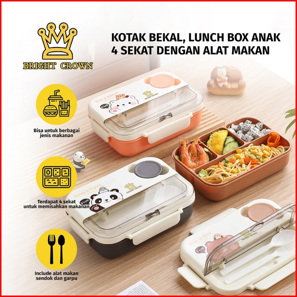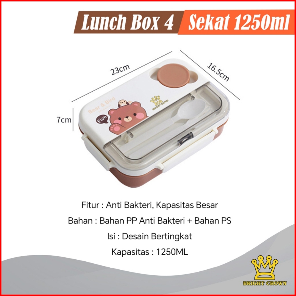 Bright Crown Kotak Bekal 4 Sekat 1250 Ml Motif Karakter Lucu Free Wadah Saus Mini Alat Makan