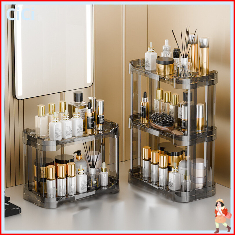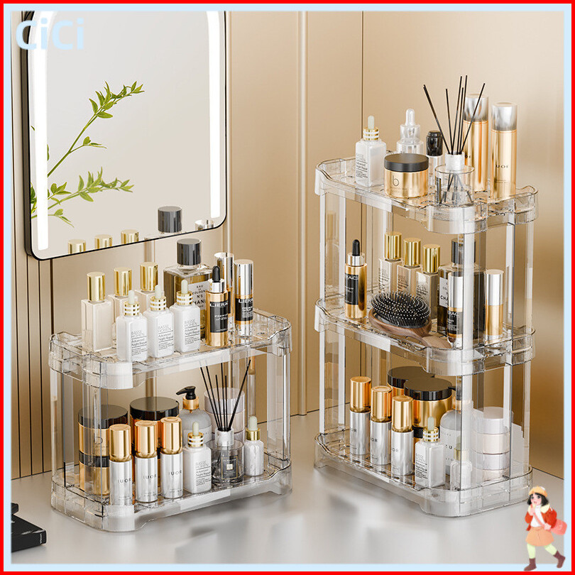Rak Kosmetik Acrylic 3 Tingkat Serbaguna Rak Penyimpanan Multifungsi Make Up Organizer Kotak Penyimpanan Desktop