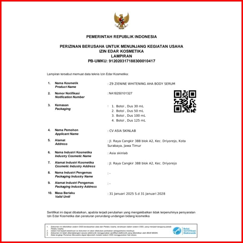 Z9 Body Serum White Aha 50 Ml Ll Whitening Moisturizing Skin Ll Serum Pemutih Badan