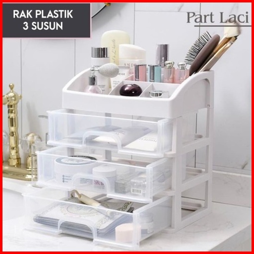 Rak Kosmetik 3 Tingkat Rak Multifungsi 3 Susun Laci Tempat Acc