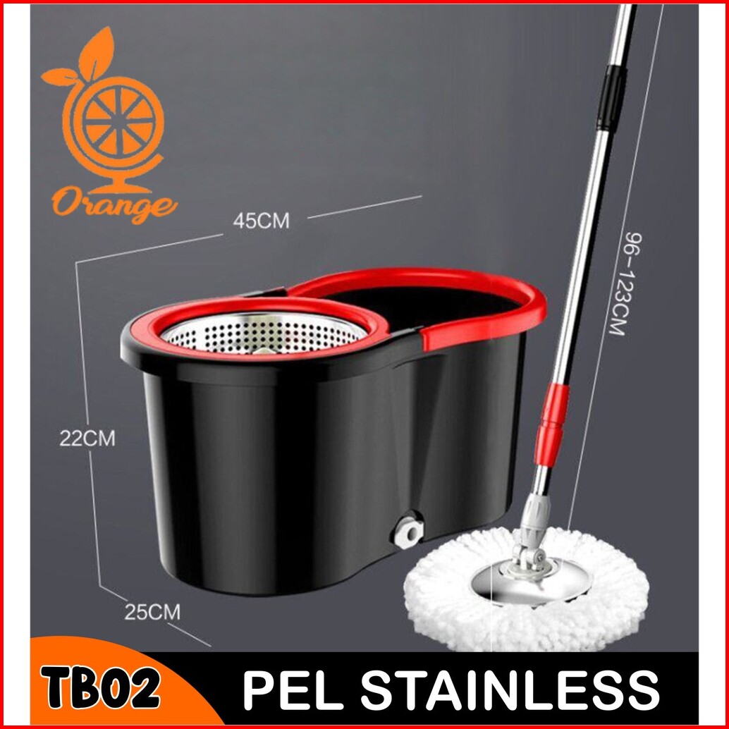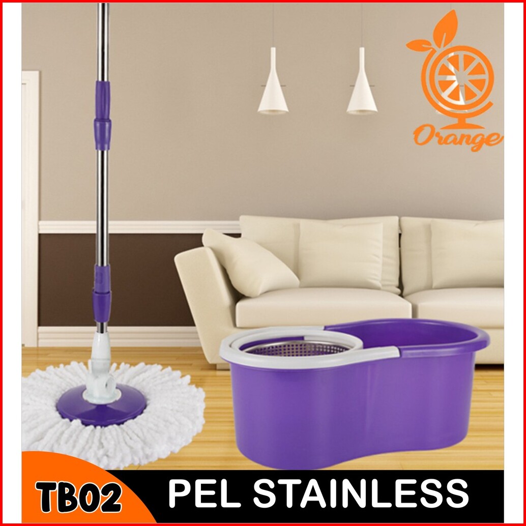 Alat Pel Lantai - Mop Pel Lantai - Pel Lantai Peras Otomatis Stainless Steel Spin Mop Putar