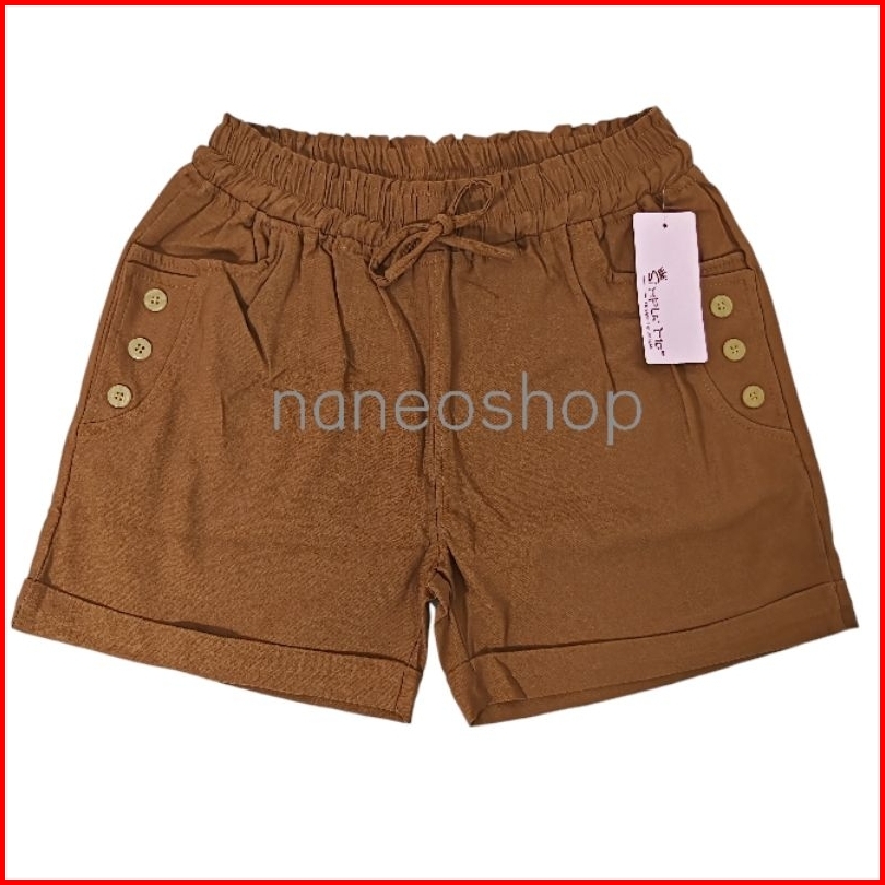 Celana Pendek Wanita Hotpants Kancing 3 Stretch Tebal Simple Me