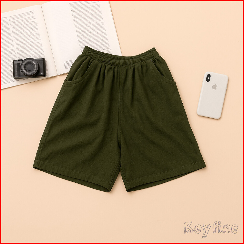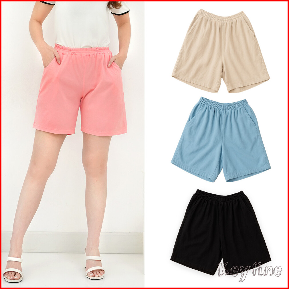 Keyfine Celana Pendek Wanita Polos Bahan Katun 100 Shorts Wanita Berkantong Santai