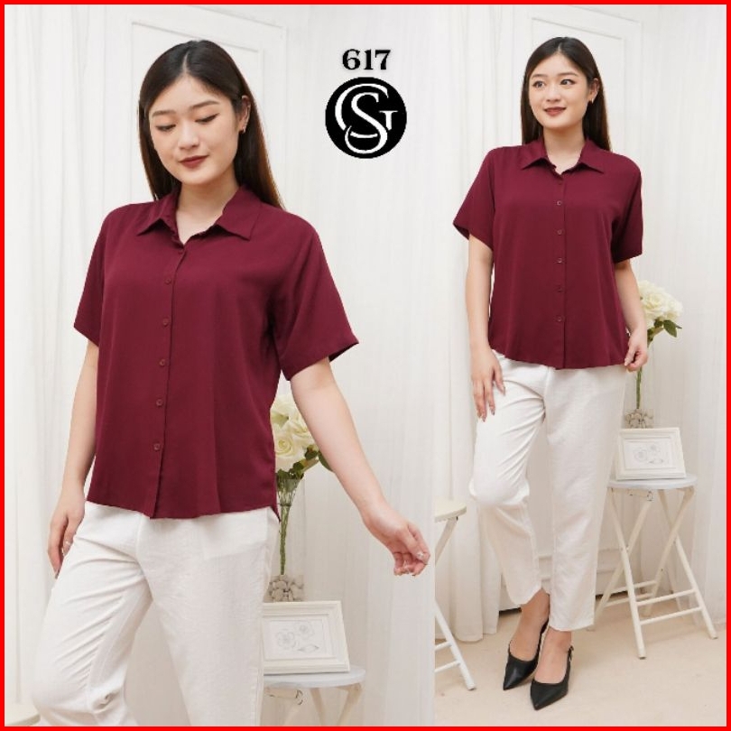 Kemeja Wanita Kemeja Wanita Tangan Pendek Katun Twill 30s - 617