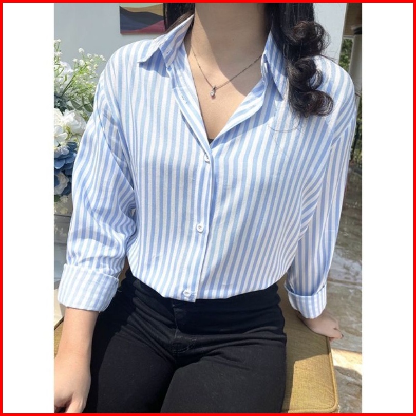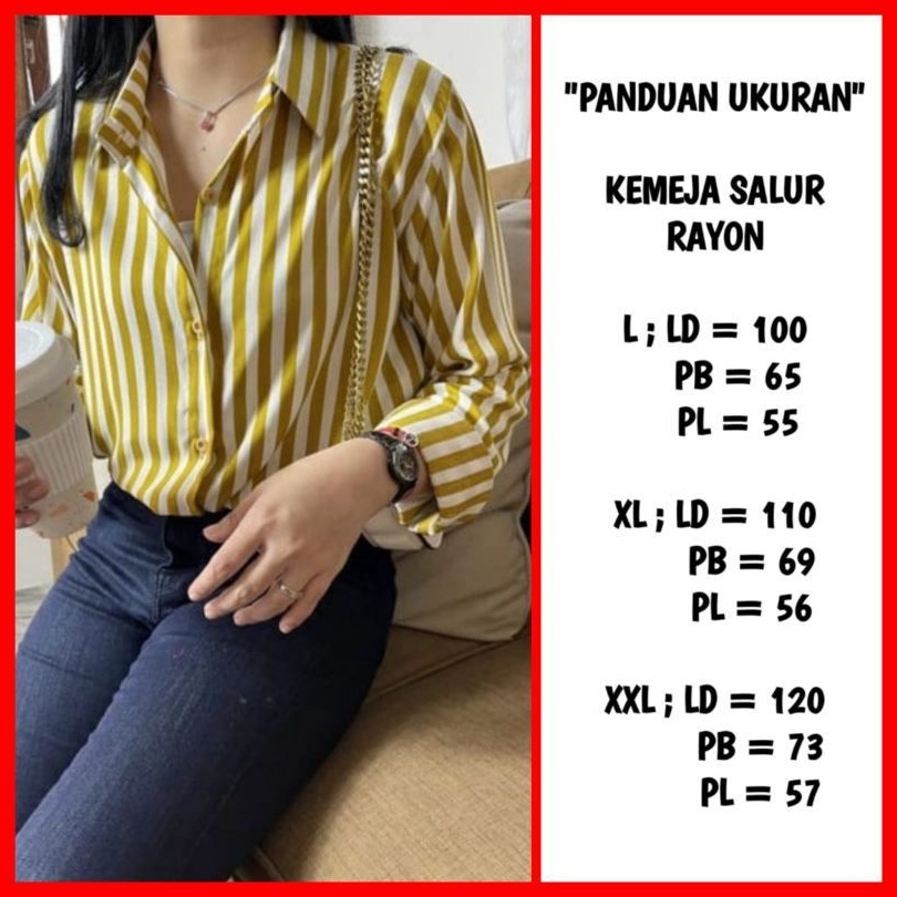 Kemeja Salur Wanita Kemeja Kerja Wanita Katun Rayon Lengan Panjang