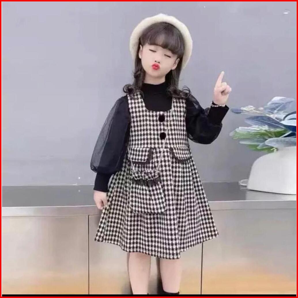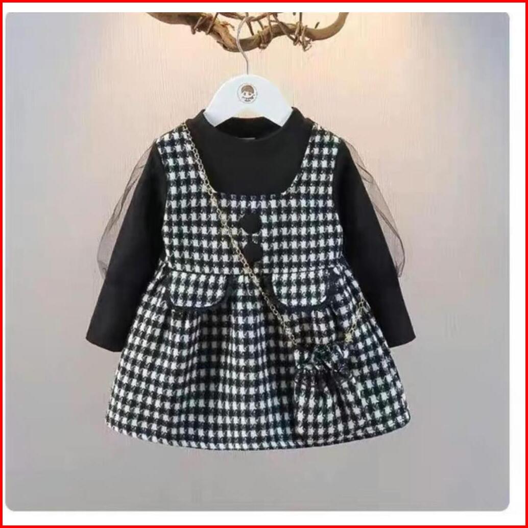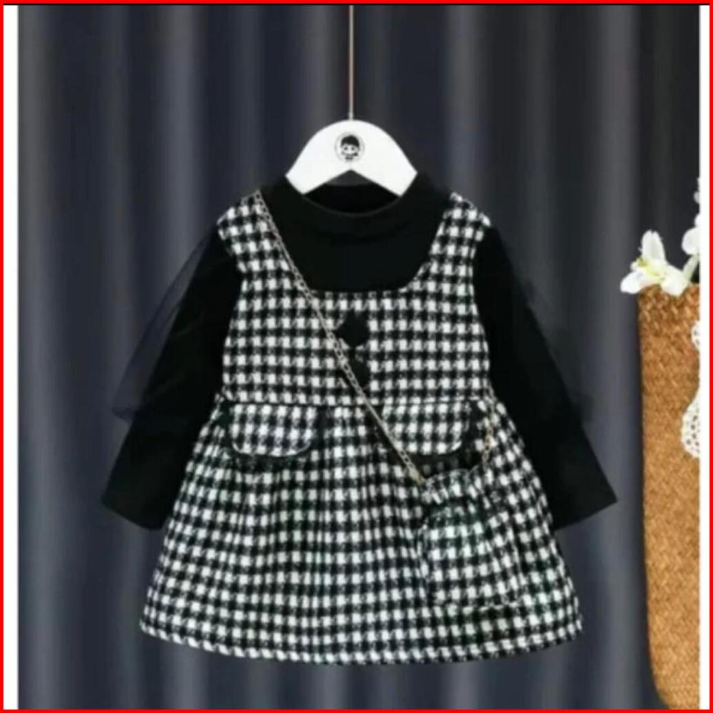 Dres Anak Perempuan Katun Kotak Usia 0-4 Tahun