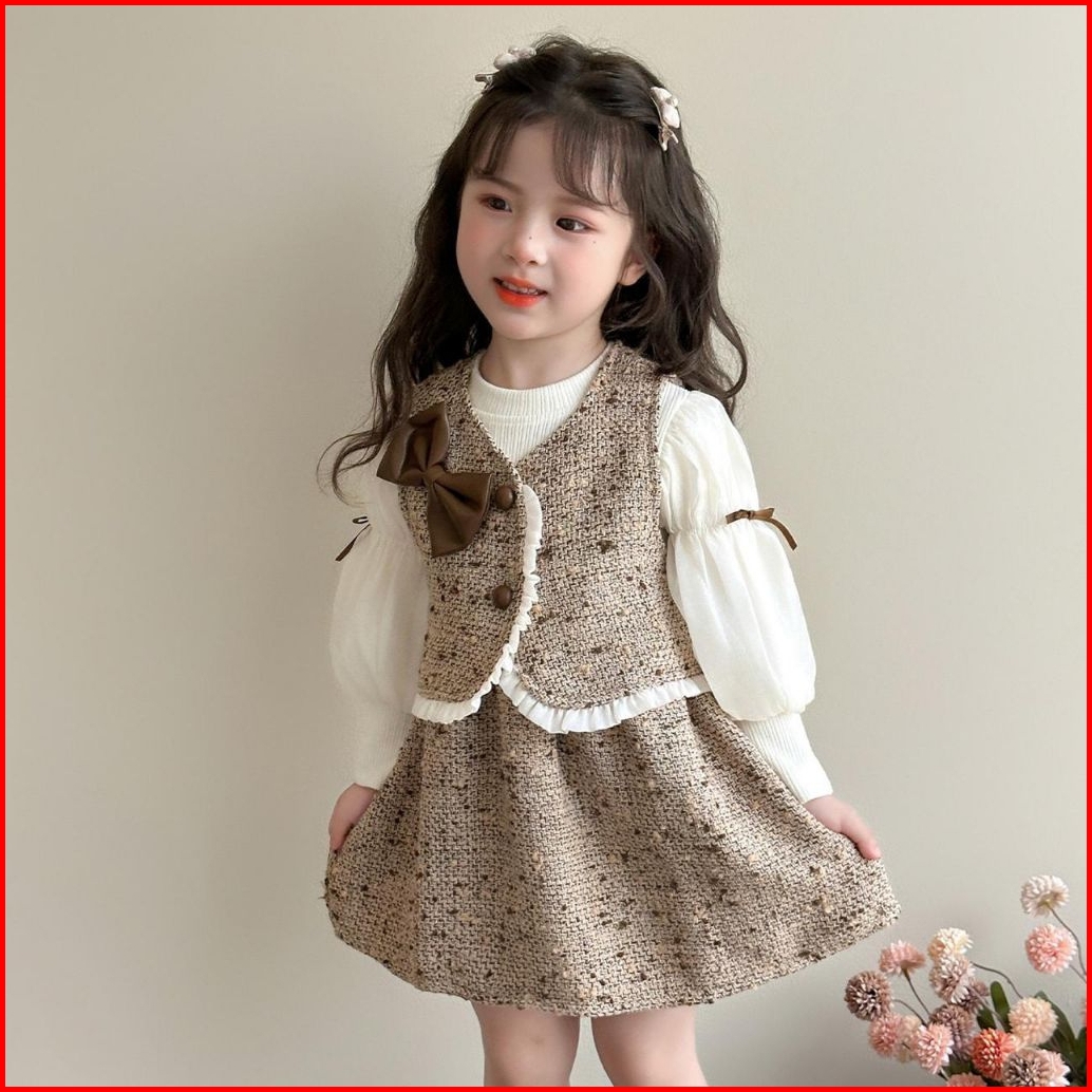 Dress Jong- Yoen Anak Korea Lengan Baloon Usia 1-4 Th Dress Anak Perempuan Model Rompi Nyatu Import