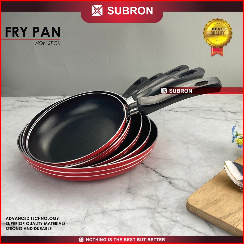 Subron Frying Pan Fry Pan Lapis Teflon Non-stick Anti Lengket 22cm 24cm 26cm Tebal Tanpa Tutup