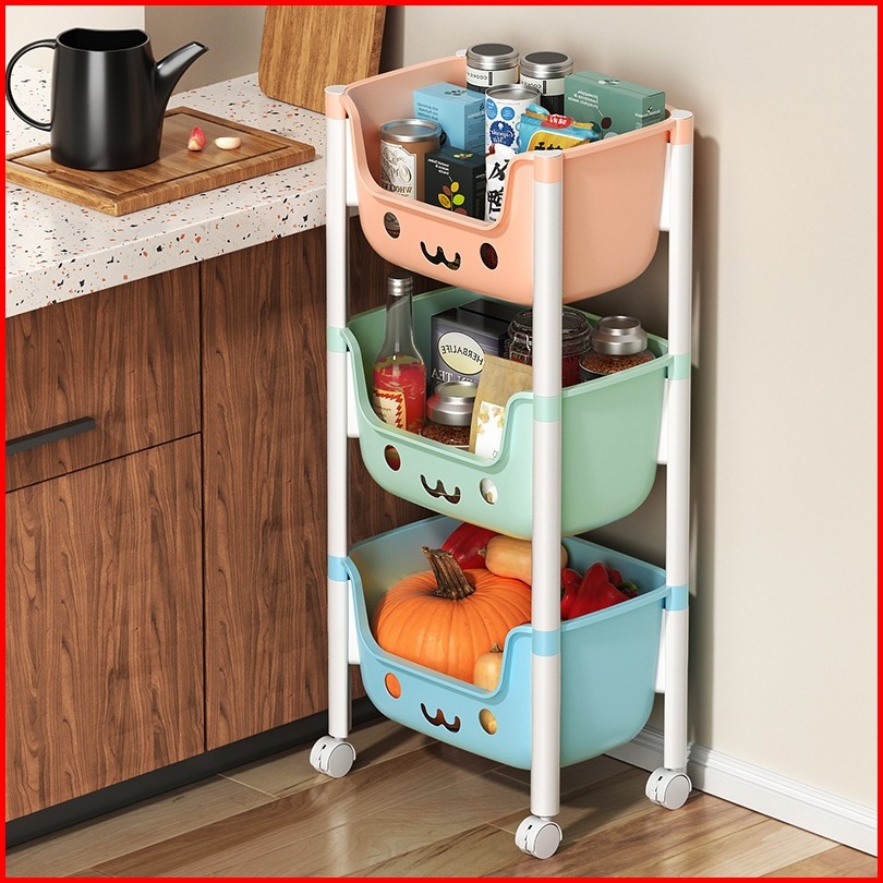 Rak Susun Serbaguna Makanan Ringan Rak Dengan Roda Susun Rak Dapur Kamar Mandi Tempat Penyimpanan Rak Penyimpanan Mainan