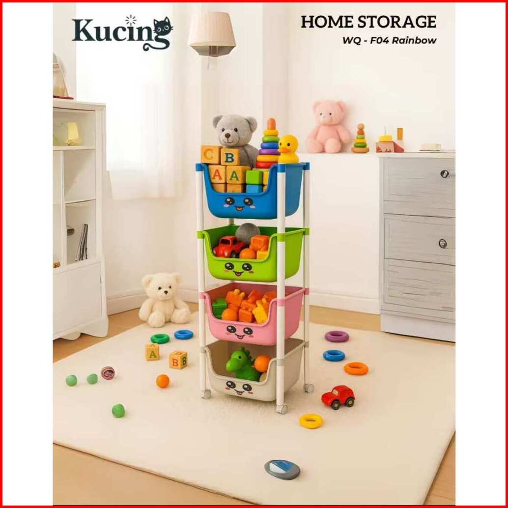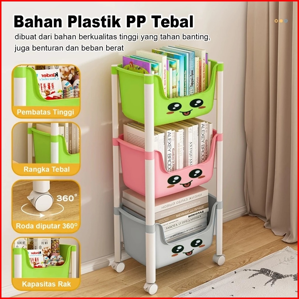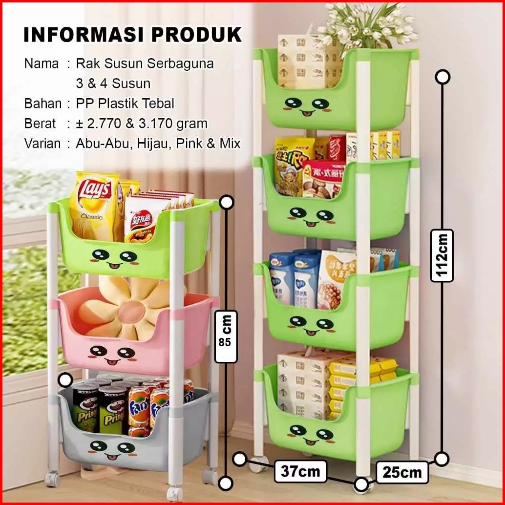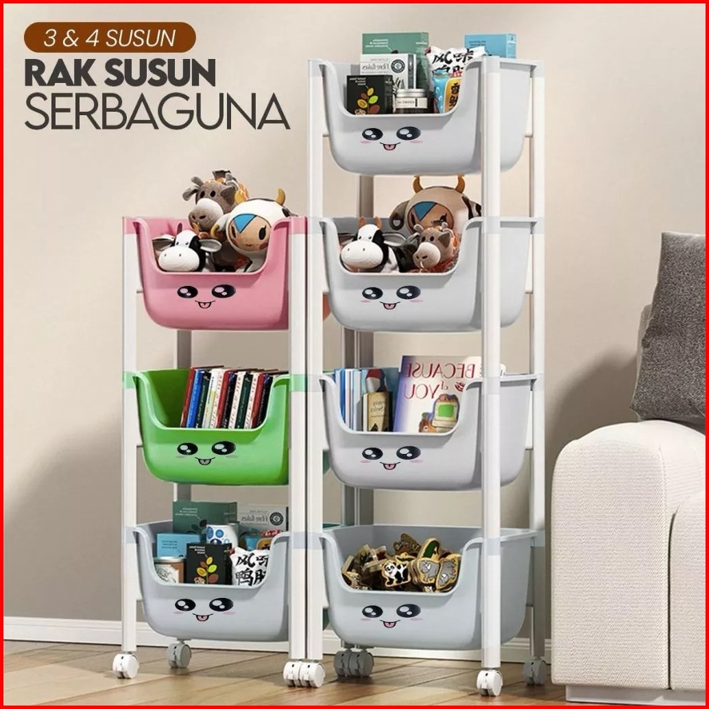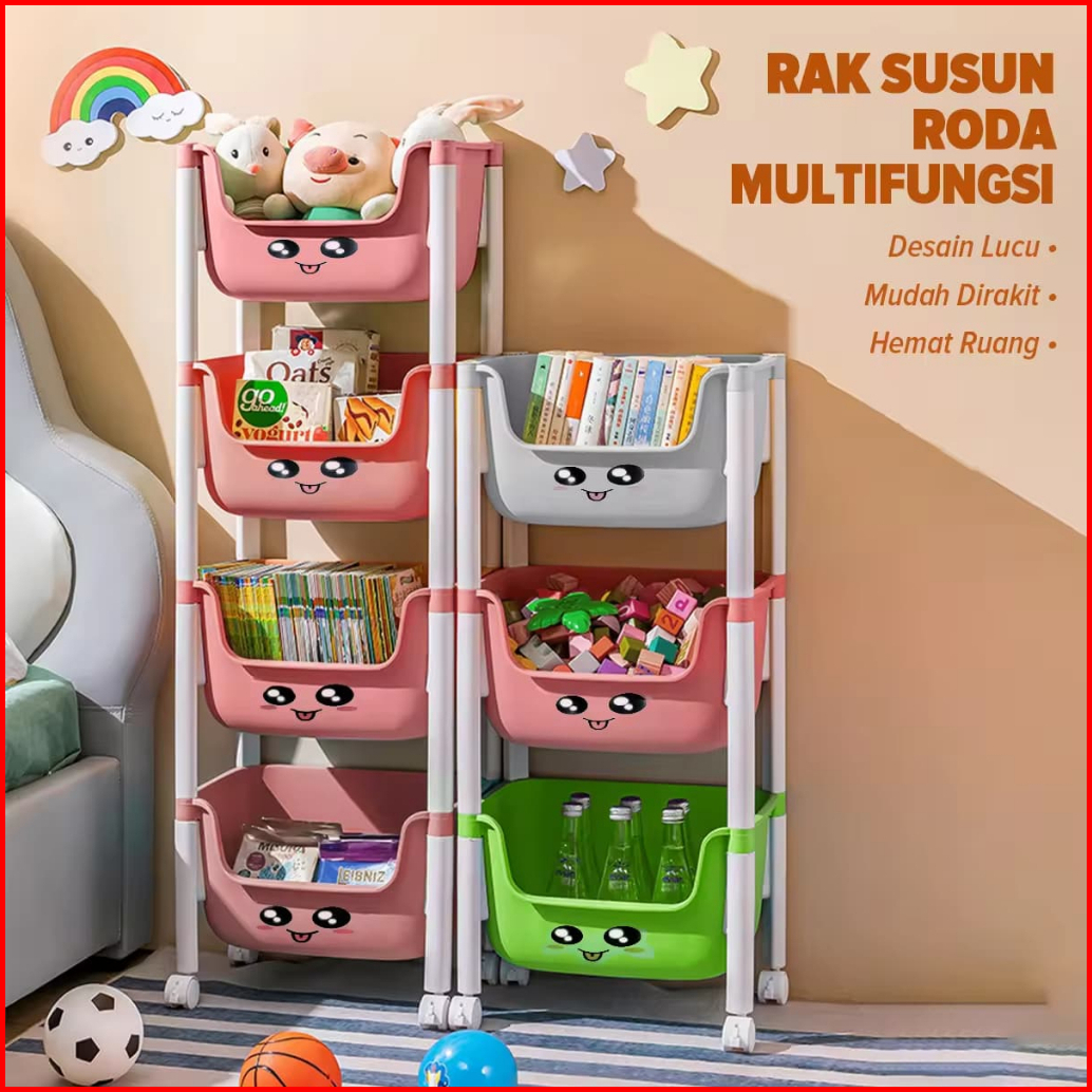 Rak Susun Serbaguna Tempat Penyimpanan Mainan Anak Dan Snack Rak Dapur 4 Susun 4 Roda Rak Buku