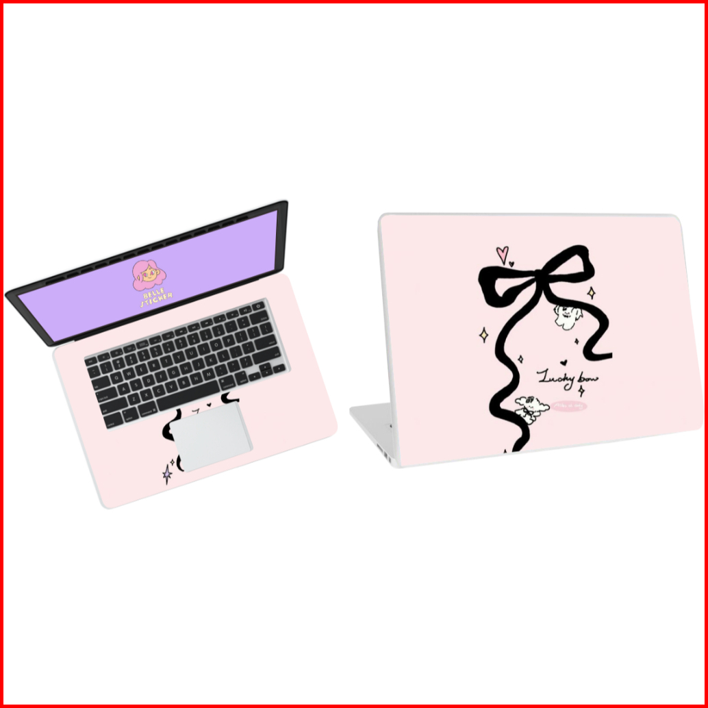 Garskin Stiker Laptop Ribon Pink Cover Protector Skin Lucu Minimalis Pelindung Semua Jenis Laptop