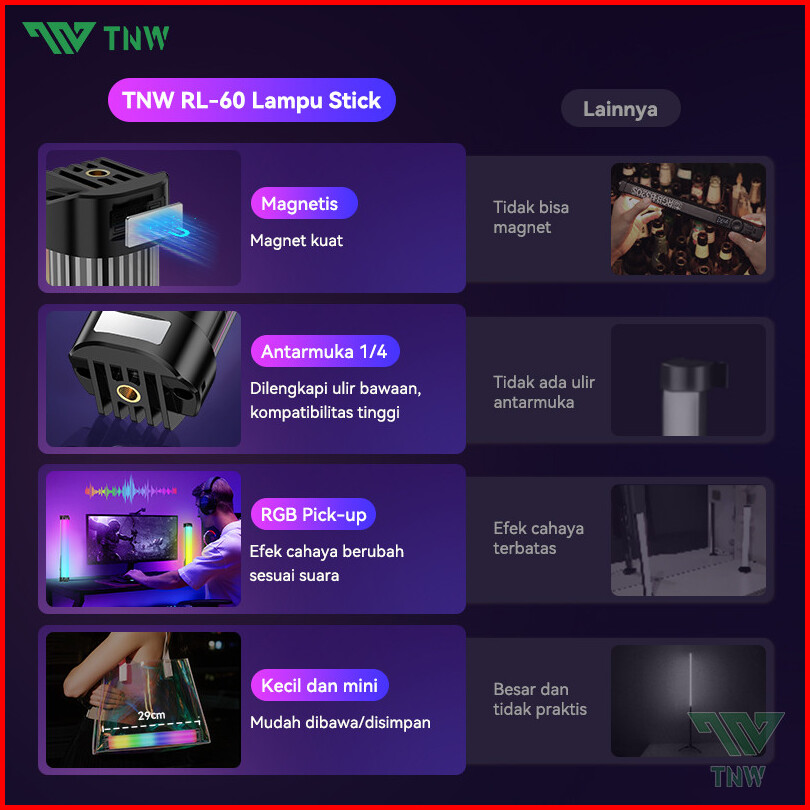 Tnw Rl60 Rgb Handheld Light Led Lampu Stick Light Lampu Tube Fotografi Led Lampu Video Lampu Kamera Hp Portable Lampu Ko