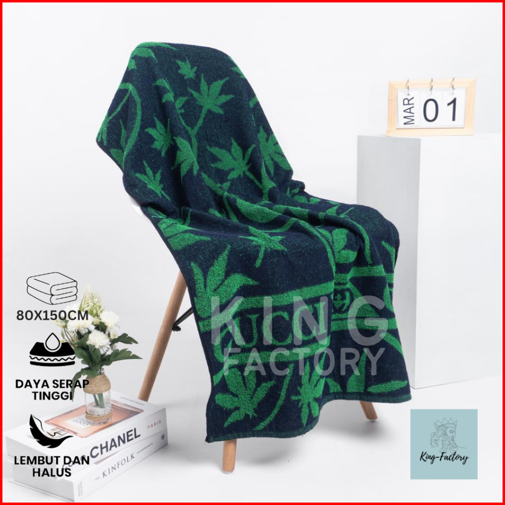 King-factory Handuk Mandi Dewasa Jumbo Size 70x140 Cm Motif G Daun Tebal Lembut Menyerap Air Katun